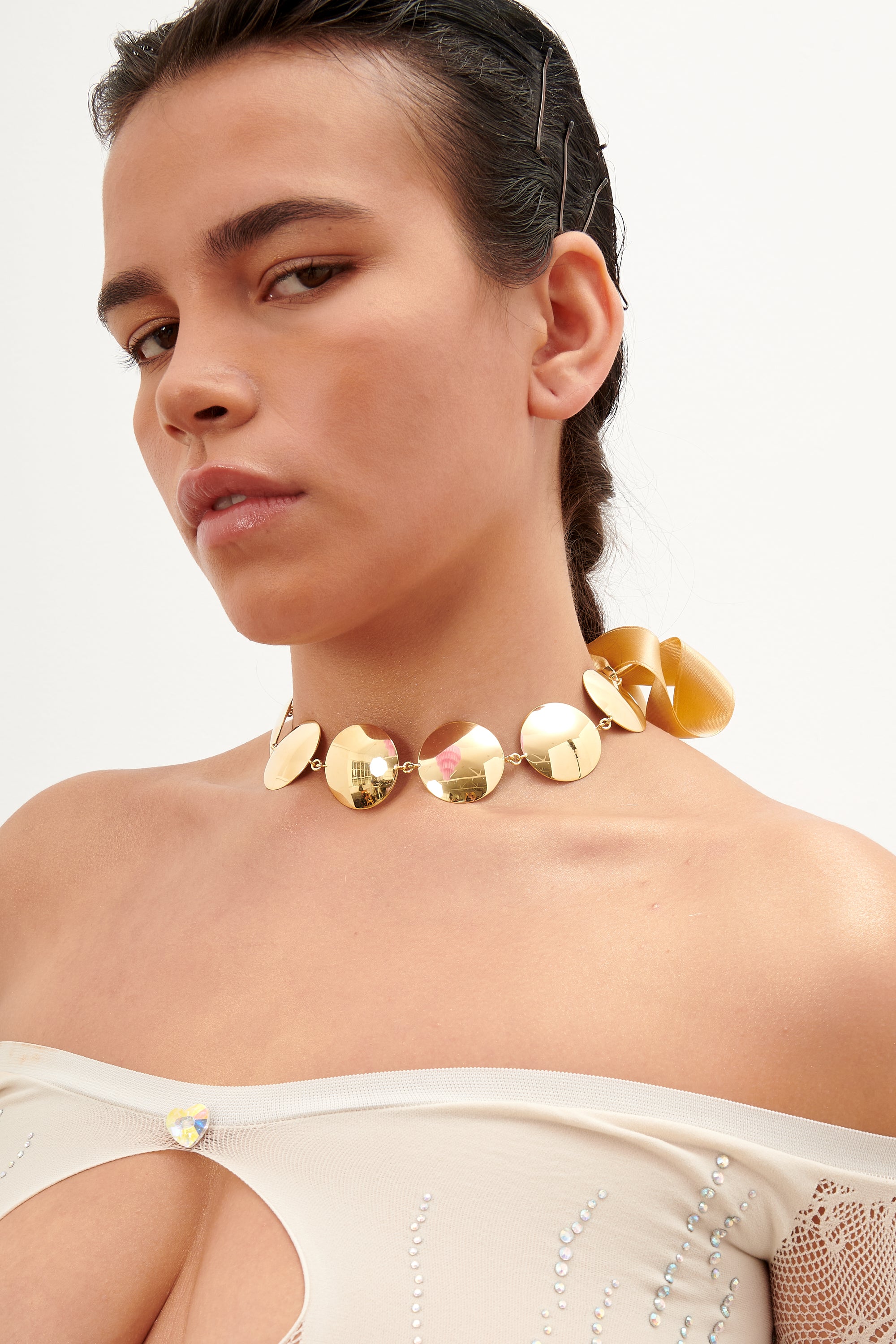 POSTER GIRL x Hugo Kreit is a match made in heaven! Hand crafted in Italy from plated mirrored discs, this necklace features a ribbon tie fastening that secures into the sweetest bow. The POSTER GIRL logo is always engraved on the back for full authenticity.
