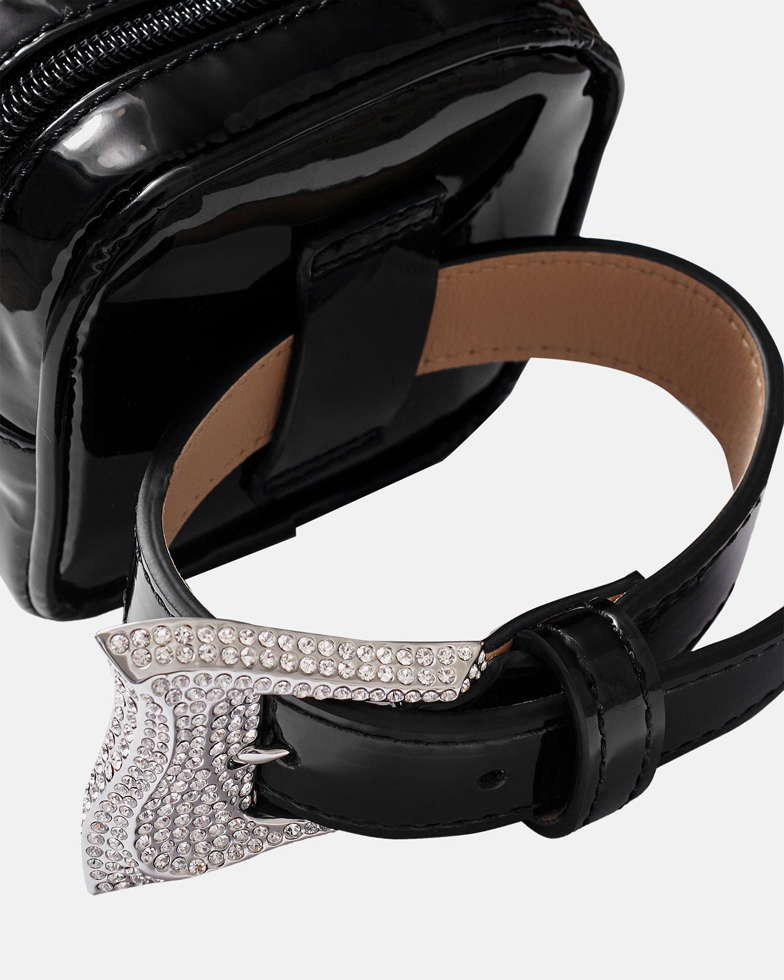 The Haus Purse Belt is the perfect accessory this season. The belt can be adjusted for the perfect fit and features our iconic custom diamanté buckle & a petite zipped pouch to stow only the small essentials. Hand crafted in London in black patent leather, the Haus purse was designed to make an outfit statement.
