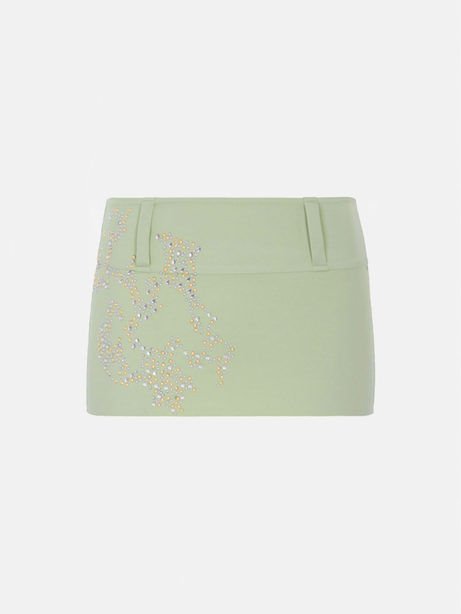 The SS23 Suzan Micro Skirt debuts our brand new lycra category. Designed for the perfect fit; constructed with a four way stretch, shape control and full coverage. The ultra mini skirt sits low on the hips for a nostalgic look. Finished with our brand new snakeskin hot fix embellished details that trail down the thigh. Pair with the Yazmine top to complete the look.