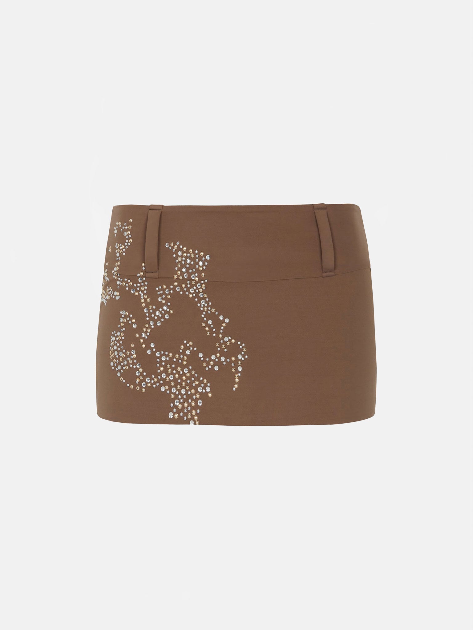 The SS23 Suzan Micro Skirt debuts our brand new lycra category. Designed for the perfect fit; constructed with a four way stretch, shape control and full coverage. The ultra mini skirt sits low on the hips for a nostalgic look. Finished with our brand new snakeskin hot fix embellished details that trail down the thigh. Pair with the Yazmine top to complete the look.