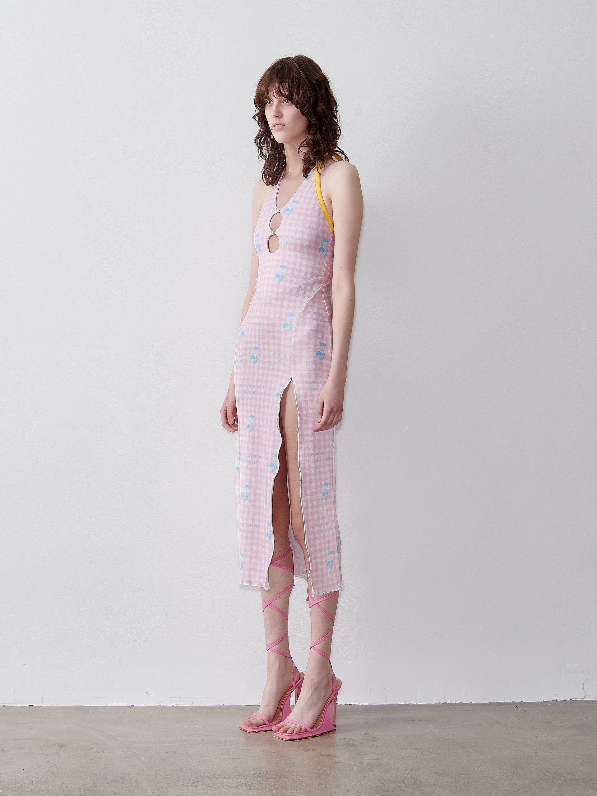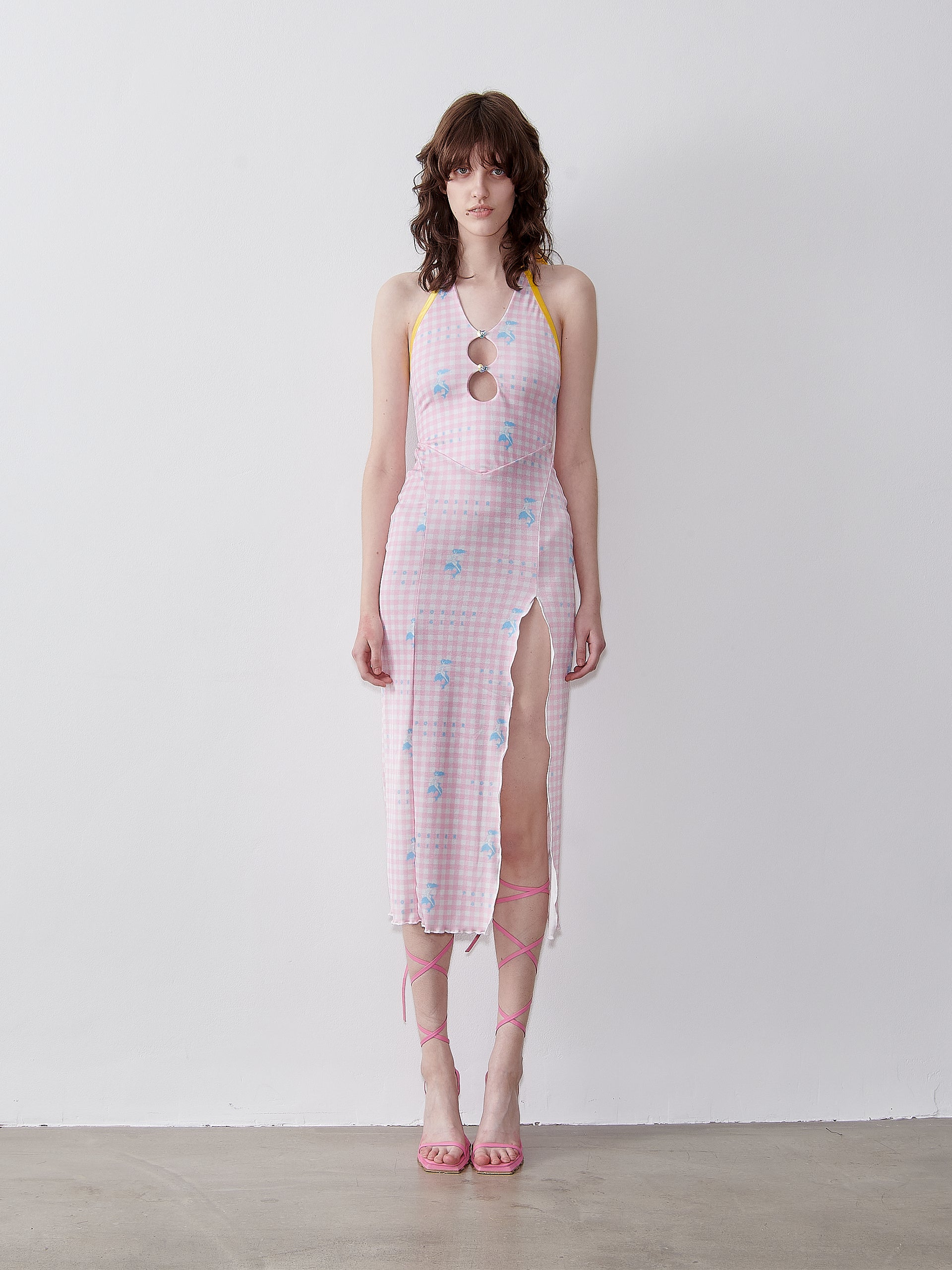 Dive into the exclusive POSTER GIRL POOLSIDE collection with the Heather Midi Dress. The midi dress is crafted in luxurious powermesh and debuts our iconic POOLSIDE gingham logo print. The Heather Dress features our signature cut out crystal heart detailing and long adjustable back tie. Finished with a high rise split and lettuce hem edging the Heather Dress is the perfect from poolside to the dance floor.