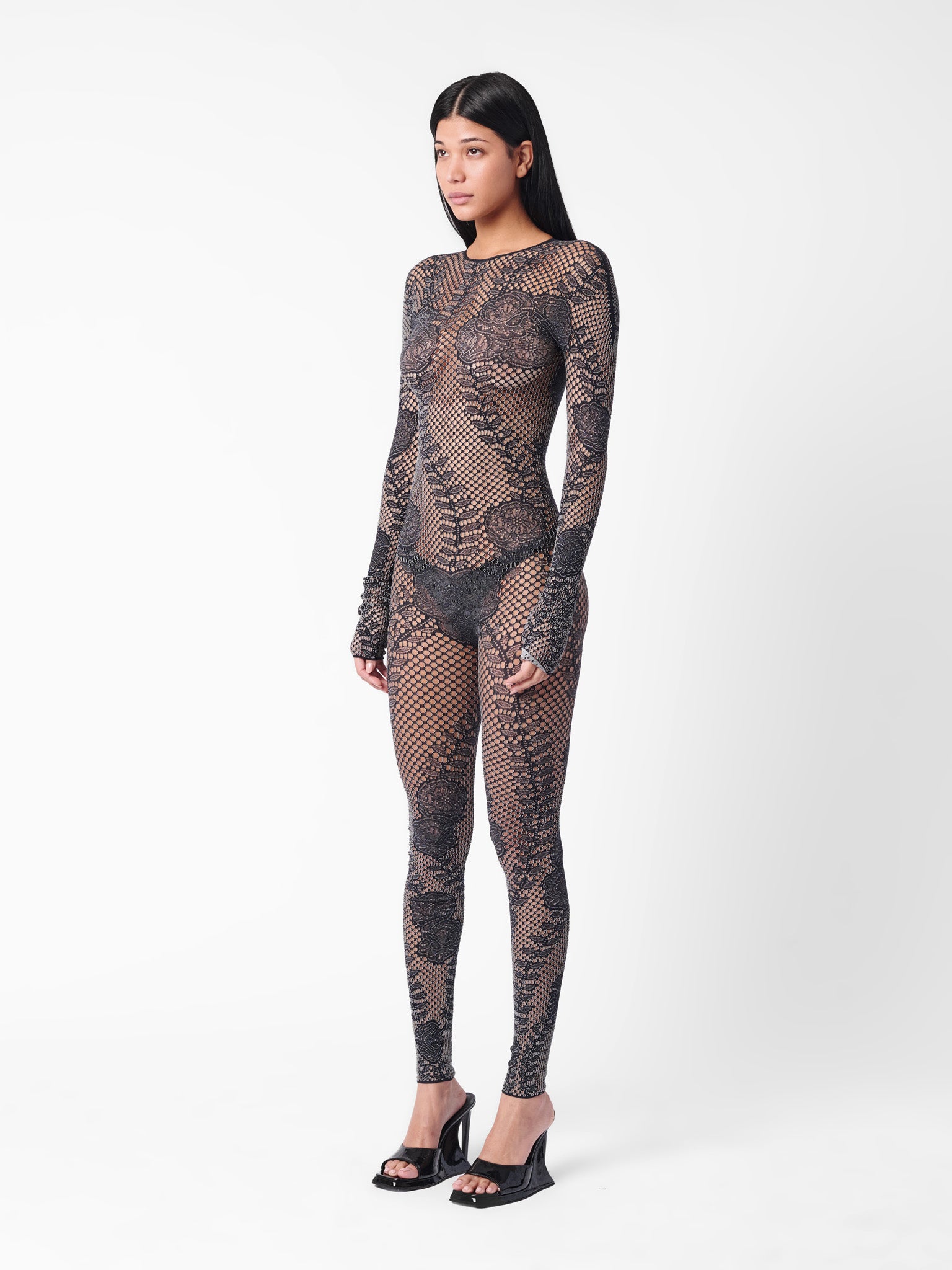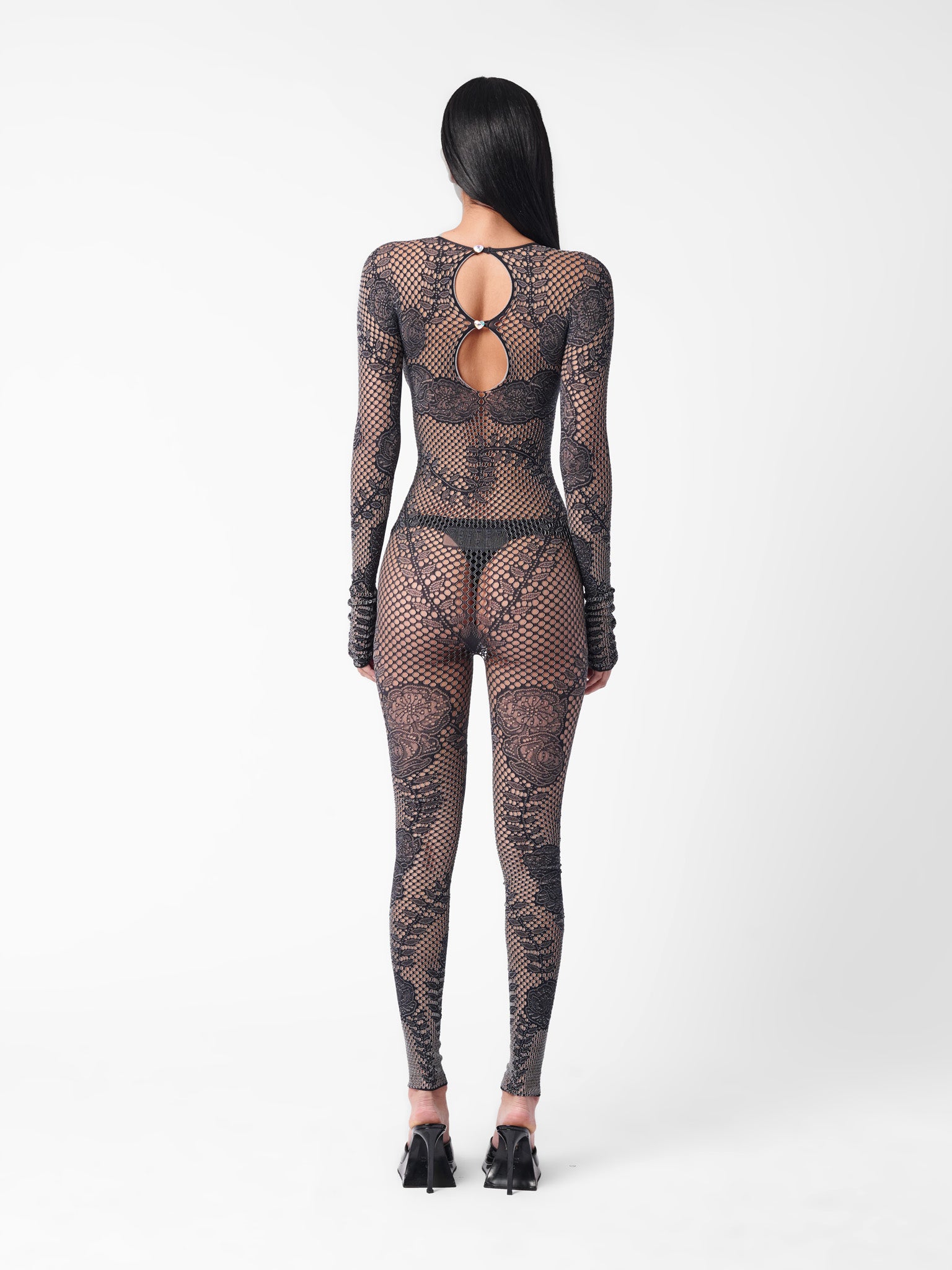 Give them good girl/bad girl vibes in our Hen Jumpsuit, detailed with vines and roses over fishnet fabric. Our signature heart buttons fasten the back of the jumpsuit for a clean finish. Always remember, the brand logo is stamped into the lower back of all designs as POSTER GIRL's mark of authenticity.