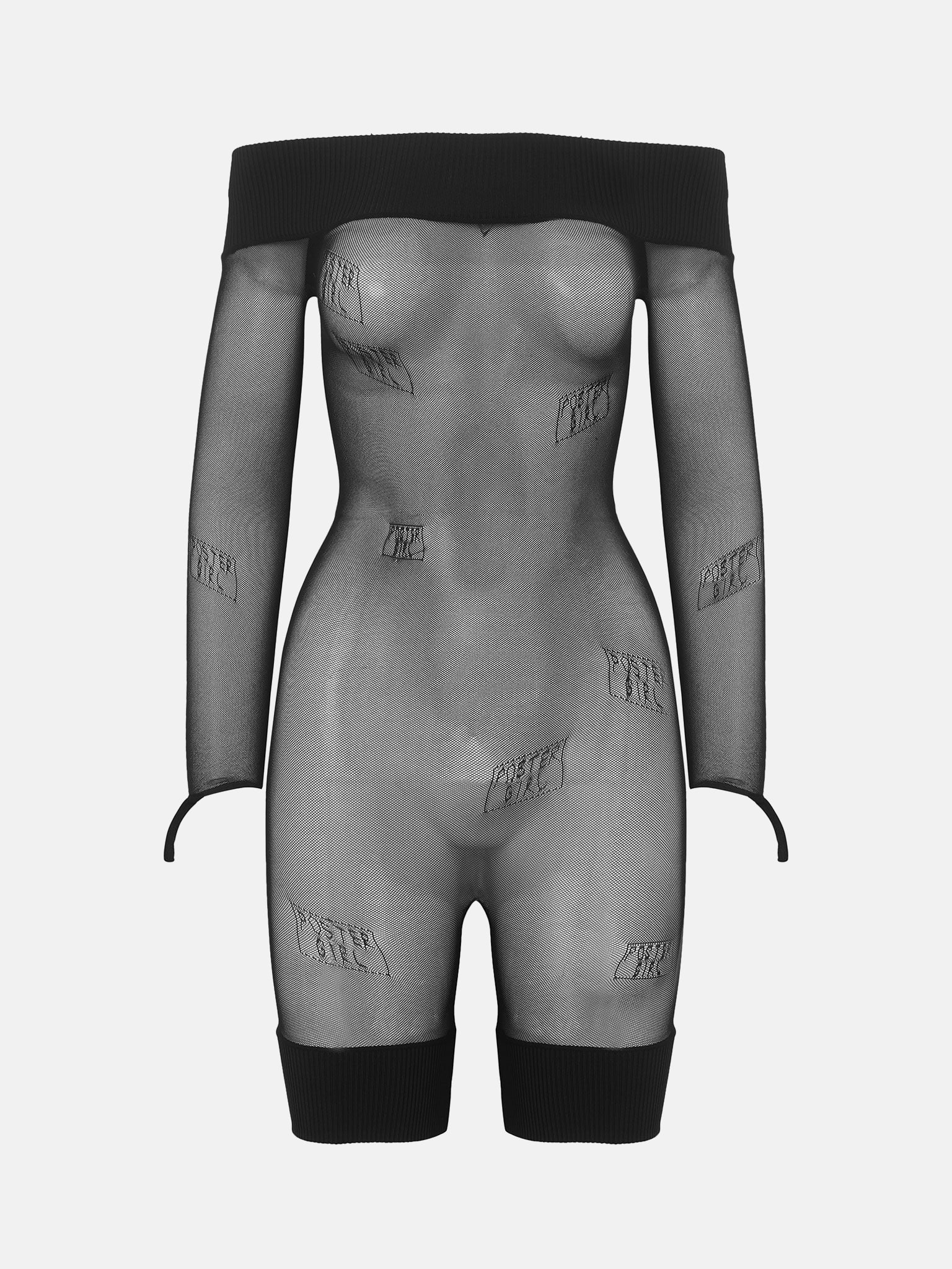 The Rum Playsuit is brand new for AW23 and introduces our brand new Toxic Mesh category; transparent sculpting shapewear with ultra soft ribbed detailing.