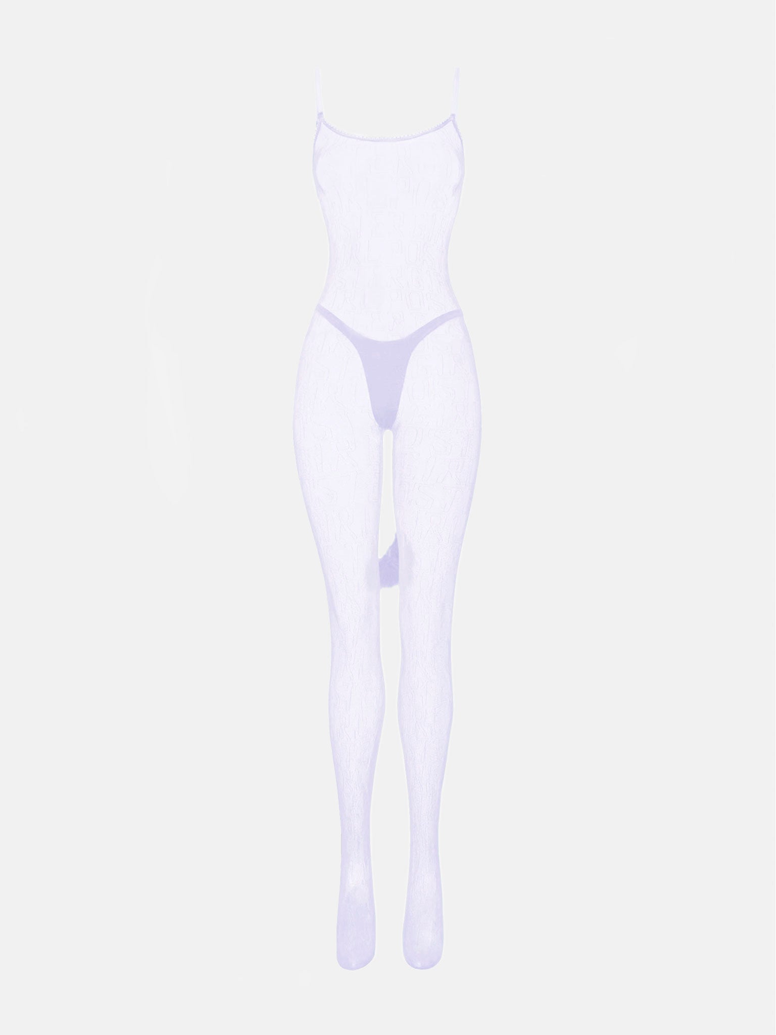 Dare to be more than ordinary in the Minted Jumpsuit. Cut from a delicate custom logo lilac lace, this figure skimming full length jumpsuit features adjustable spaghetti shoulder straps and a lace-up back detailing which can be adjusted to your desired fit. Temper the sheerness with the matching lilac thong and our Niparon Premium Nipple Covers.