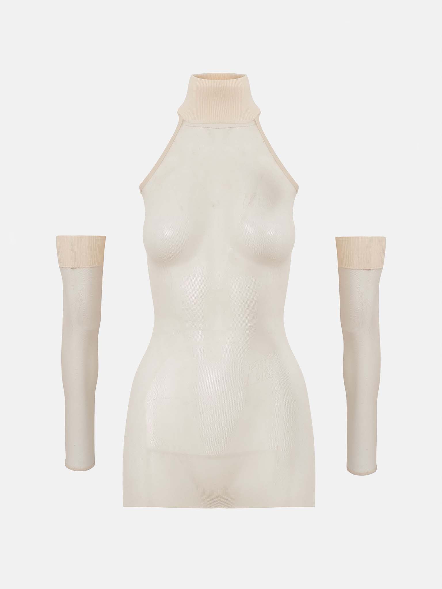 The Loot Dress is brand new for AW23, as seen on POSTER GIRL Gabbriette @gabbriette in our AW23 campaign. The Loot dress introduces our brand new Toxic Mesh category; transparent shapewear with ultra soft ribbed detailing.