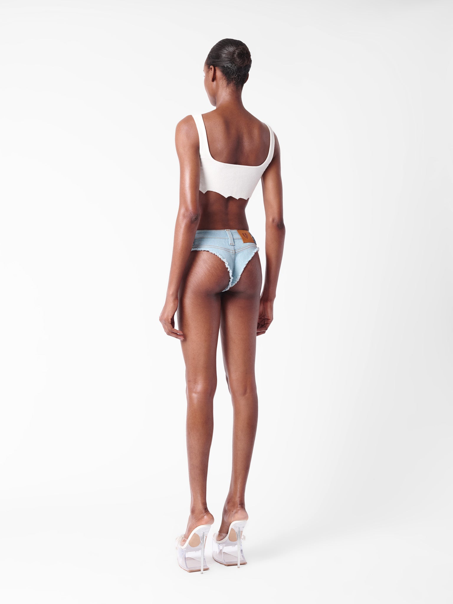 Our denim edition includes our Oakley Hotpants. Tailored for a blue jeans look, these hotpants have a generous high cut, zipping up in the front for an effortless experience. Belt loops line the waistband to style how you desire.