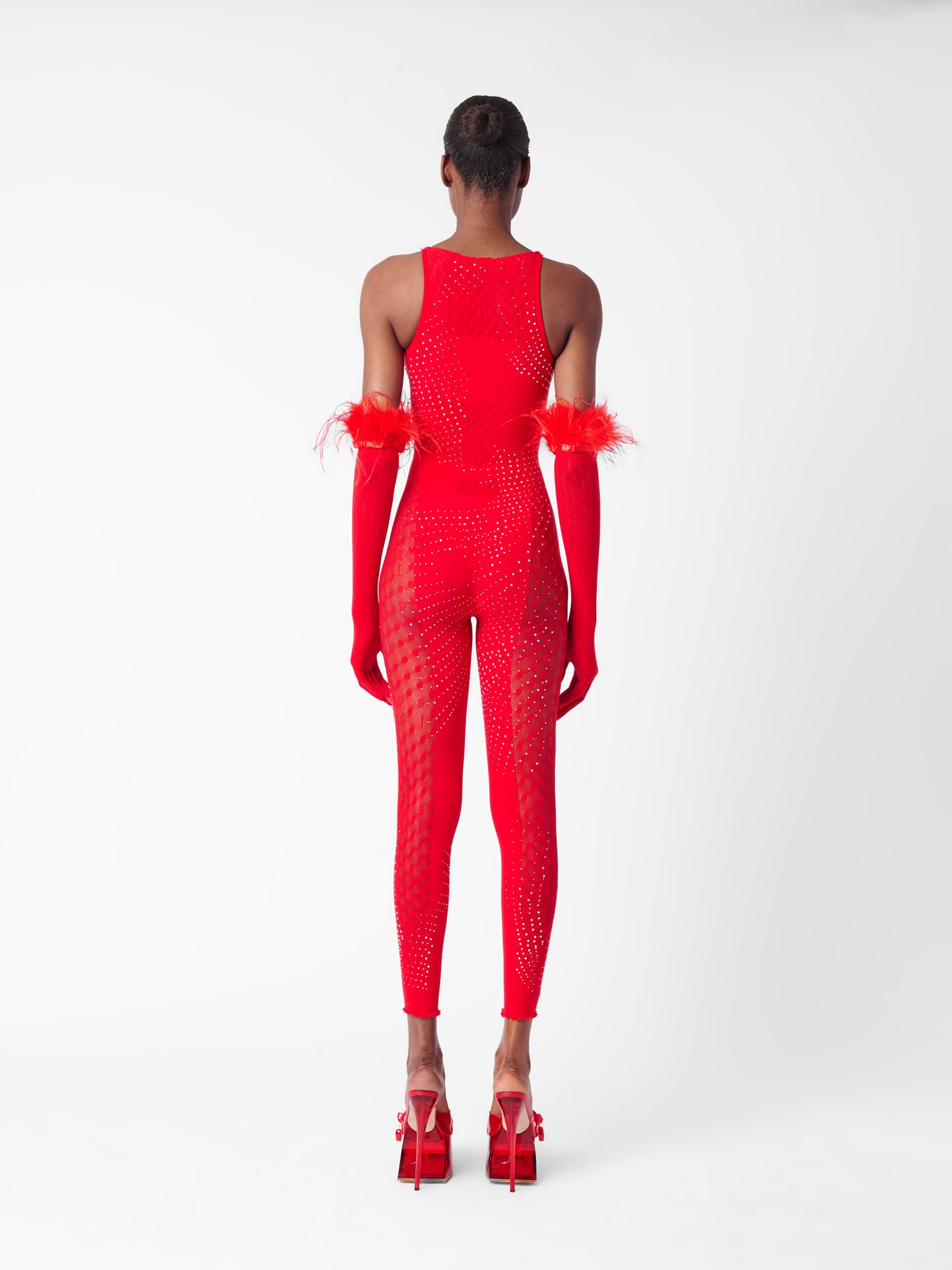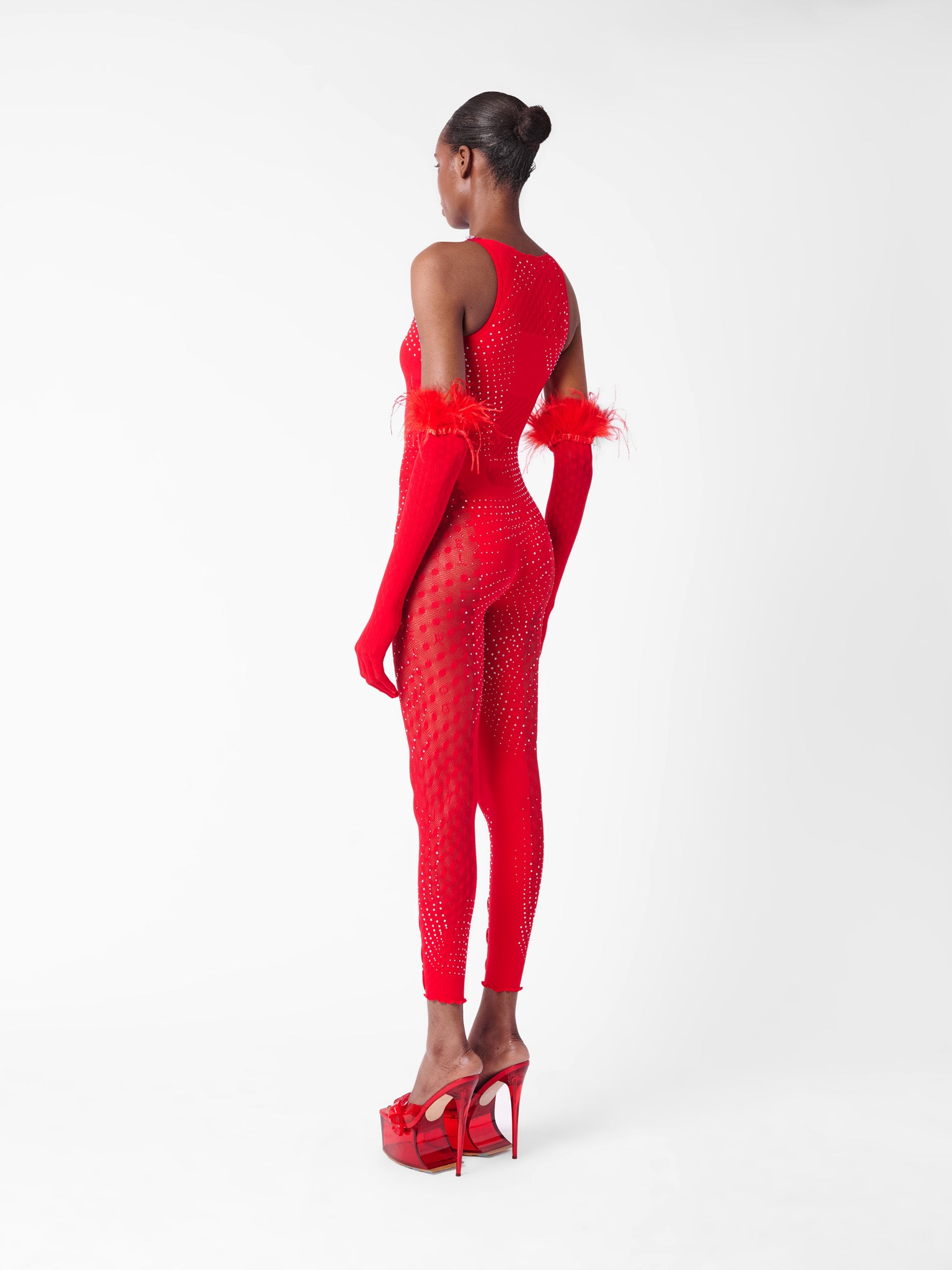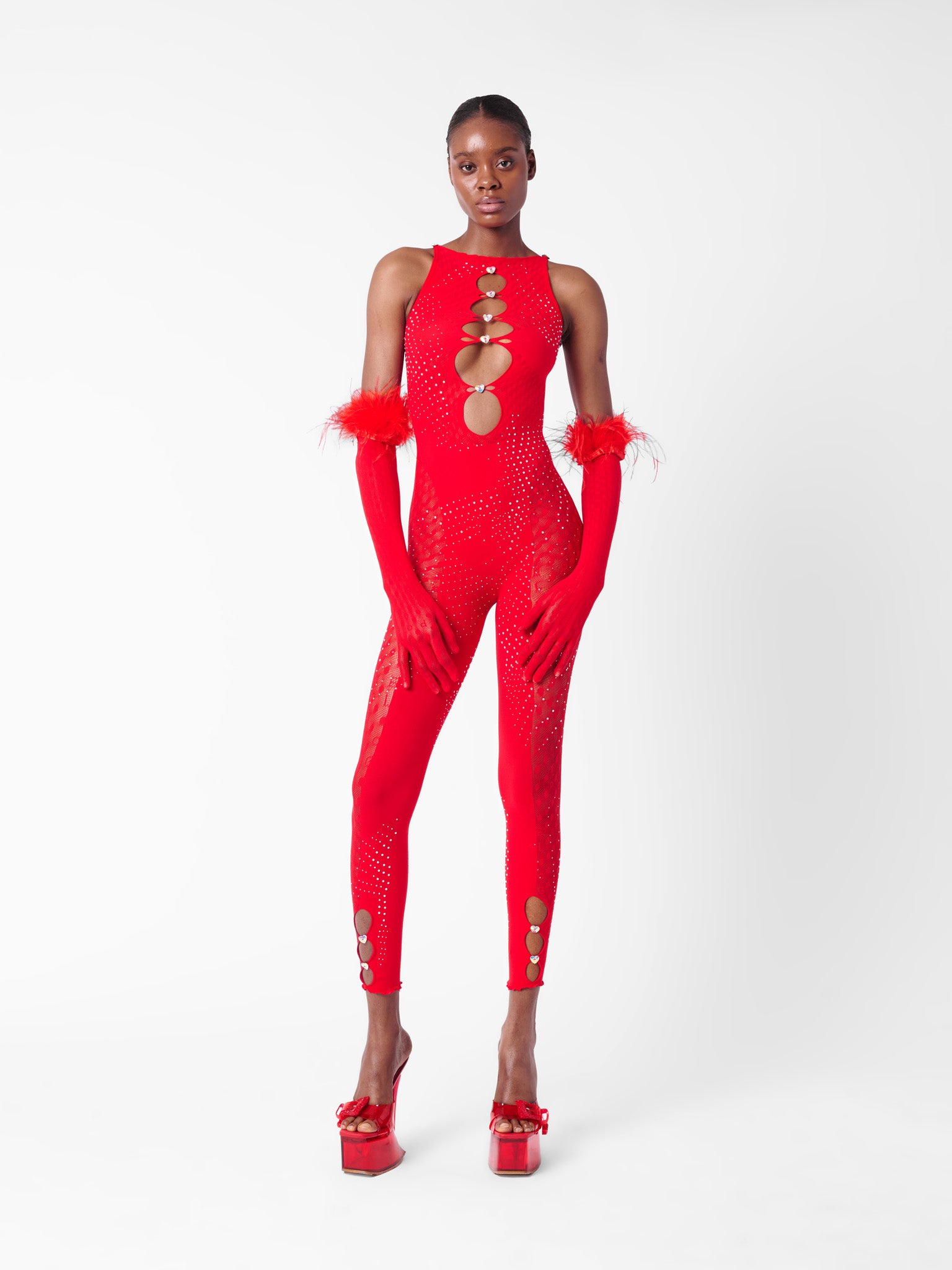 Rhinestoned Janice Jumpsuit X Gloves Heartbreaker
