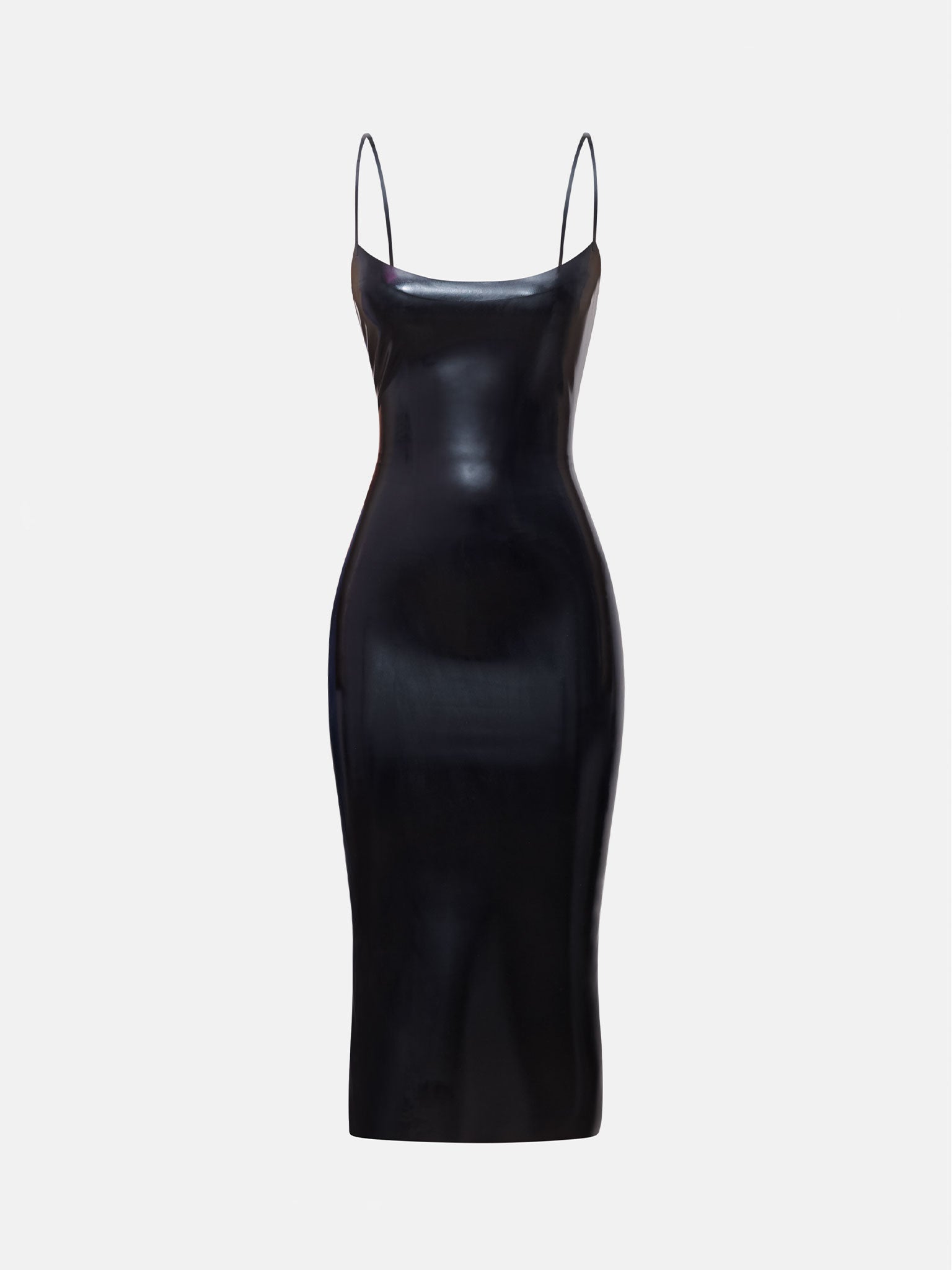 The Whistle Dress is a sexy, sultry, show-stopping piece. Sculpted to hug the body, this midi latex dress is the perfect blend of sexy and sophisticated. Features a centre back leg slit and adjustable spaghetti-straps and low scoop neckline. Don't forget to use the latex wipe to give it that extra shine.