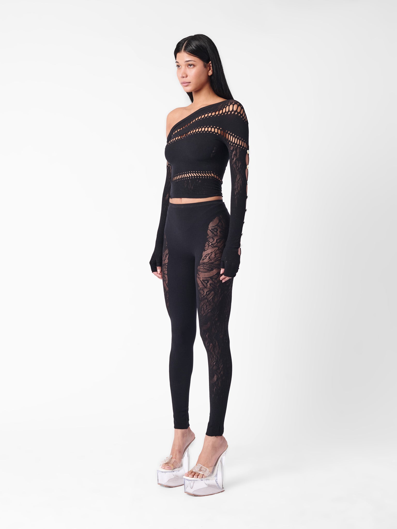 Our new Ivy Legging is uniquely designed with floral cut out details and contrasting textures. Pairs perfectly with our Ivy Top in Black.
