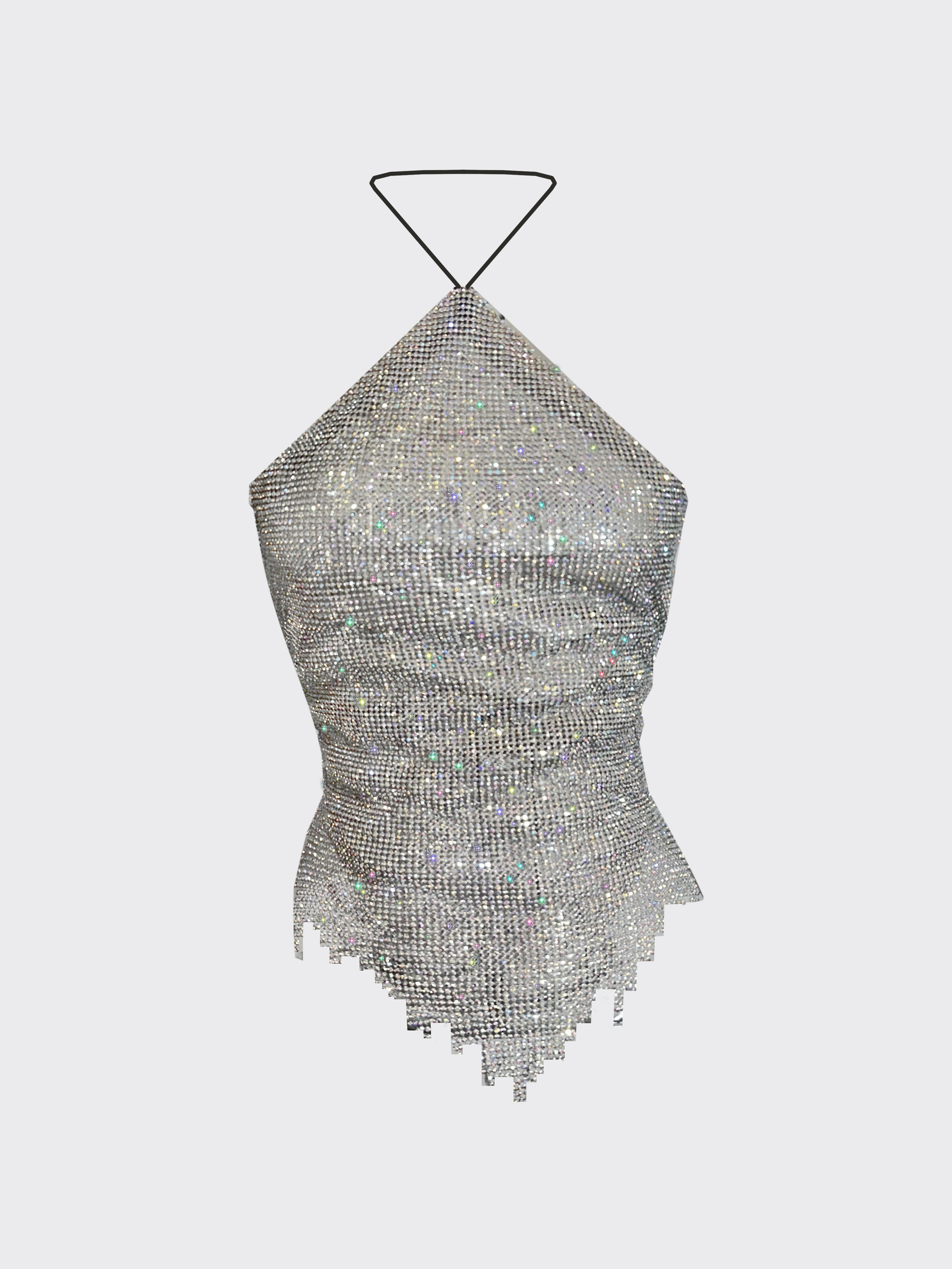 A limited-edition piece created for the New Year’s season. Designed with a sleek halterneck silhouette, it features a smooth, cooling metal weave that catches the light from every angle. The open-back design adds a daring touch, while adjustable links ensure a secure, customizable fit.