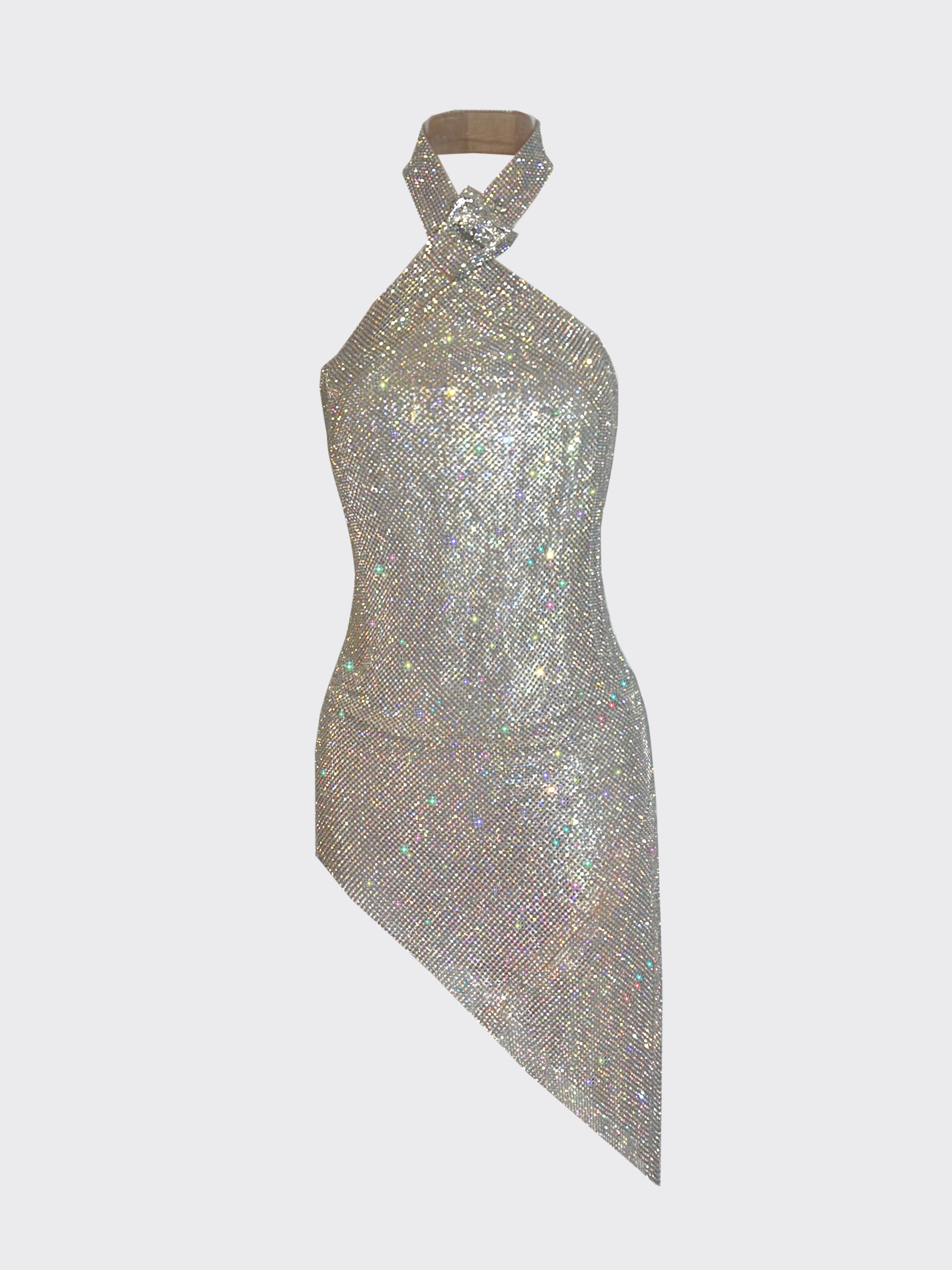 A limited-edition piece created for the New Year’s season. Designed with a sleek halterneck silhouette, it features a smooth, cooling metal weave that catches the light from every angle. The open-back design adds a daring touch, while adjustable links ensure a secure, customizable fit.