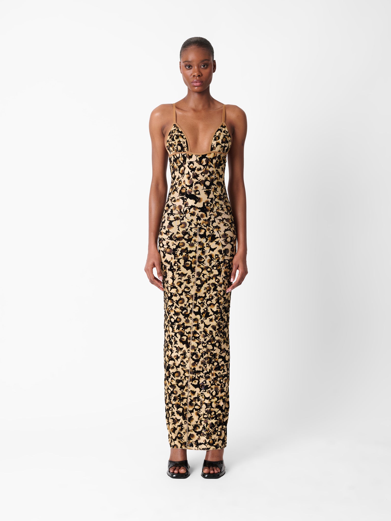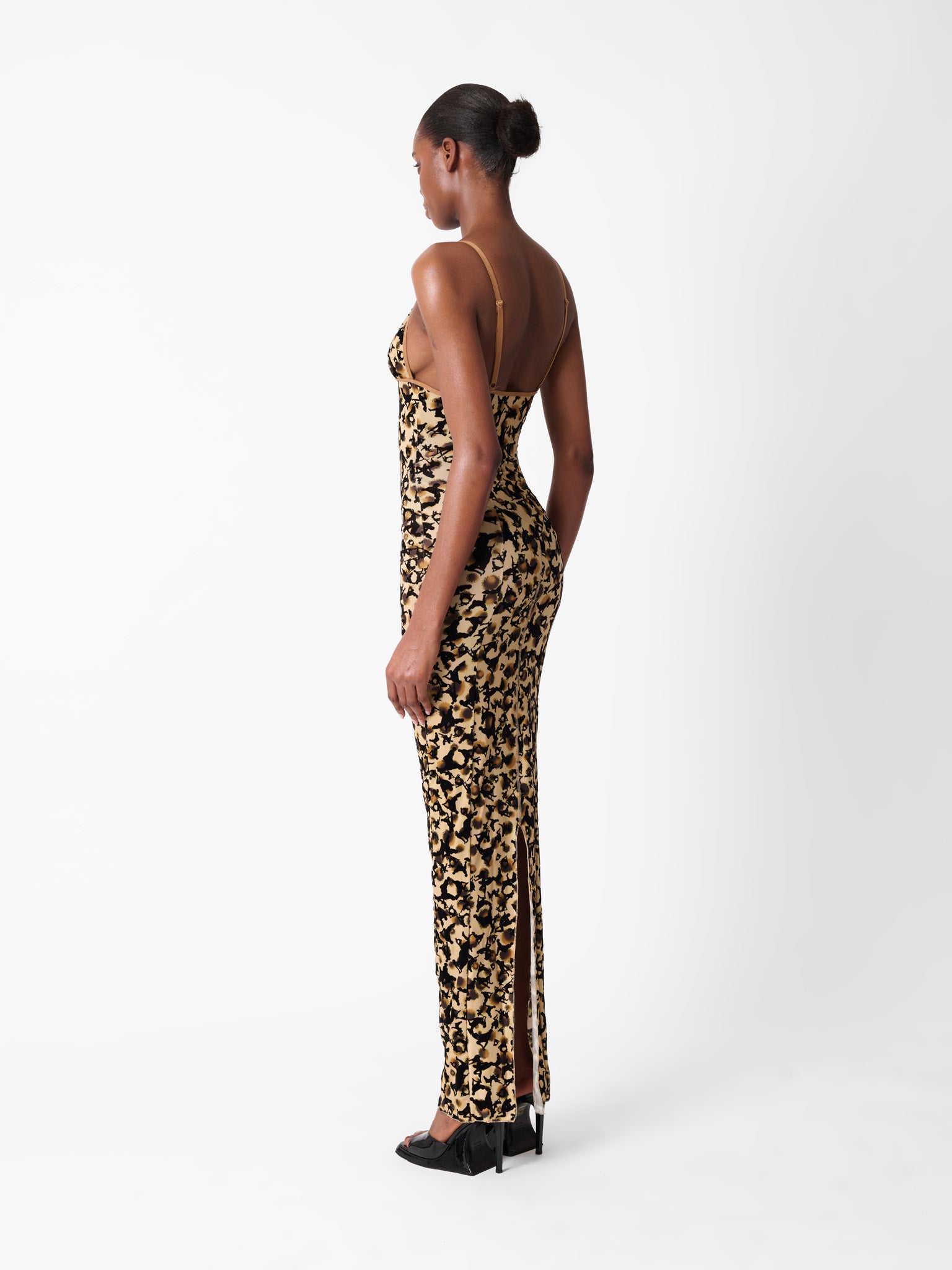 Nothing but money is sweeter than honey. Look your best in our Hun Dress in a maxi dress style with a back vent skirt slit. Sex tape pattern covers the dress and adjustable heart slider straps to suit whichever body type.