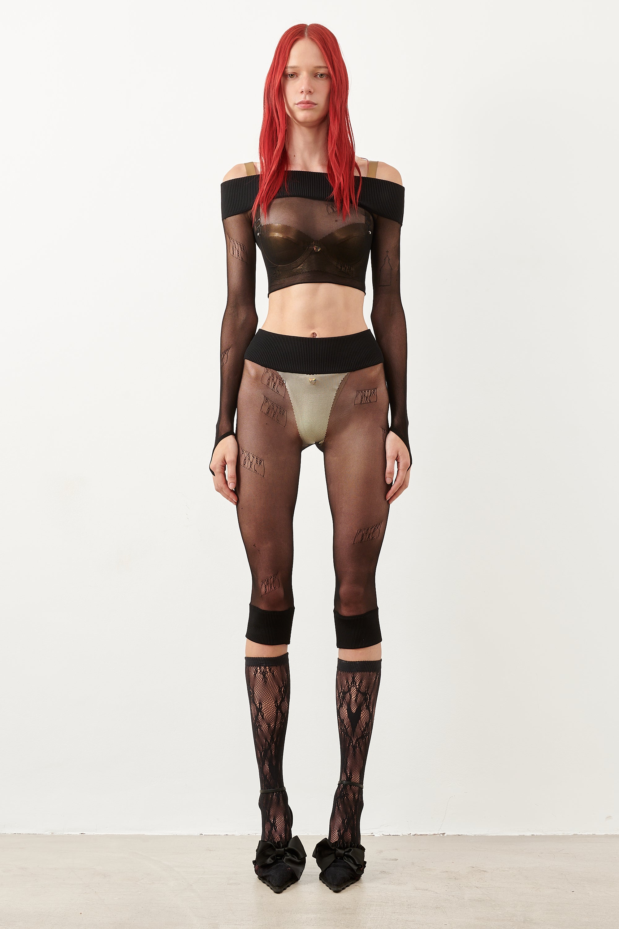 The Rum Top is brand new for AW23 and introduces our brand new Toxic Mesh category; transparent sculpting shapewear with ultra soft ribbed detailing.