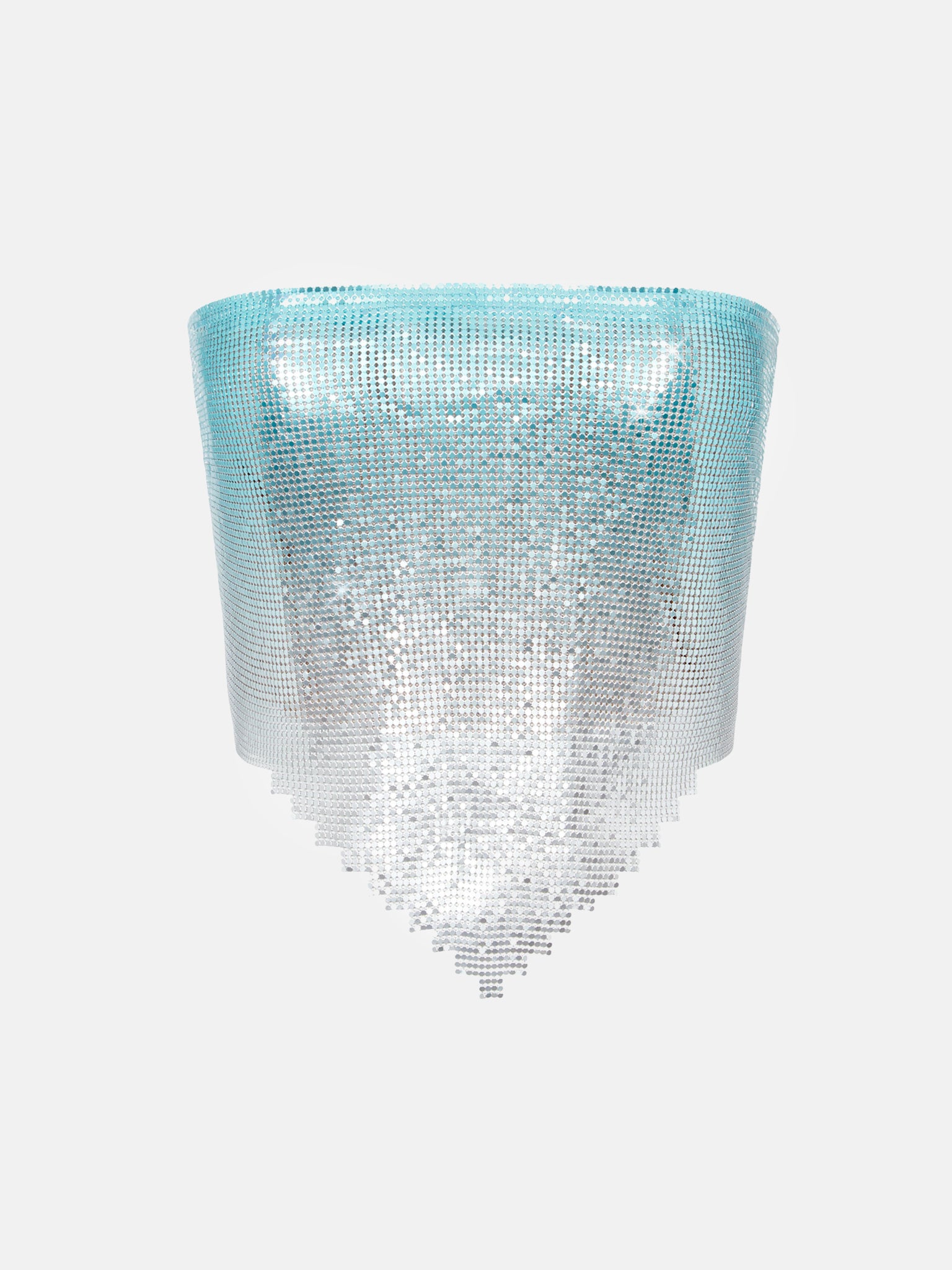 The Tia Top is brand new for AW23, inspired by our best selling Brooke Bra. Hand crafted in London with Ombre chainmail, it features a lace up back and an intricate hand cut stepped symmetrical hem. Fully lined with logo stretch mesh.