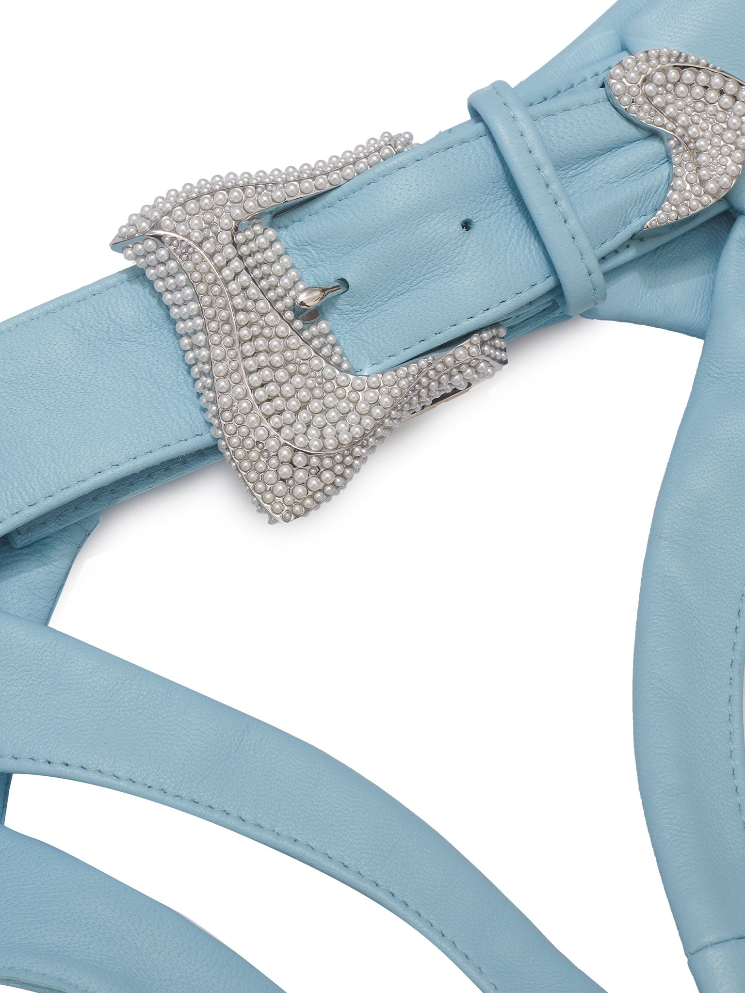 The Oshun Leather Chaps are brand new for AW23, as seen on POSTER GIRLS Gabbriette @gabbriette and Daphne Groeneveld @daphnegroeveneld in our AW23 campaign. Hand crafted in London with leather specialist techniques, these cheeky chaps feature our infamous custom buckle - updated with pearls this season.