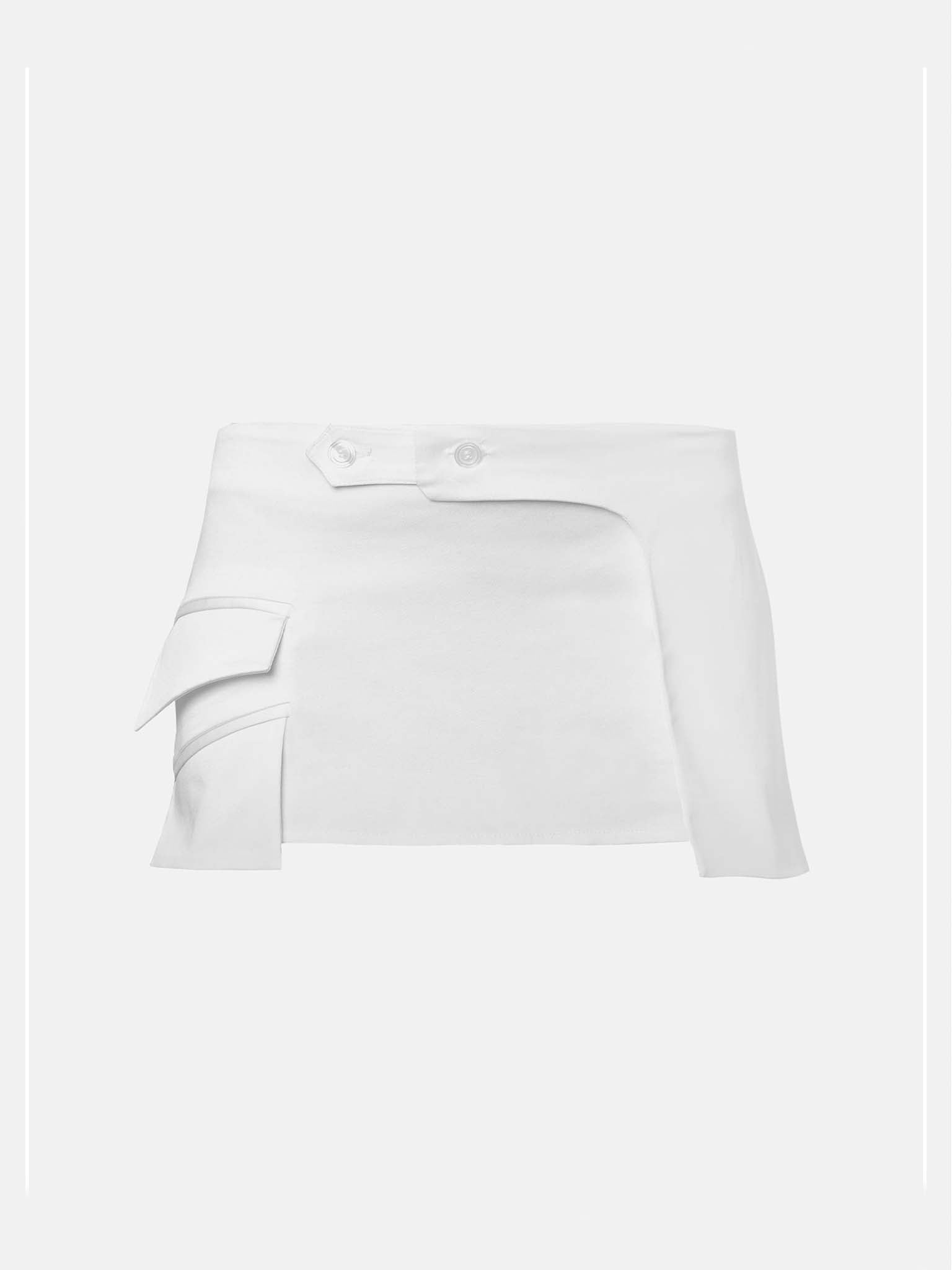 The State Mini Skirt is tailored from a white cotton fabric. Cut with a low rise waist, this fitted mini skirt features hidden hot pants, a side seam zip and pocket details.
