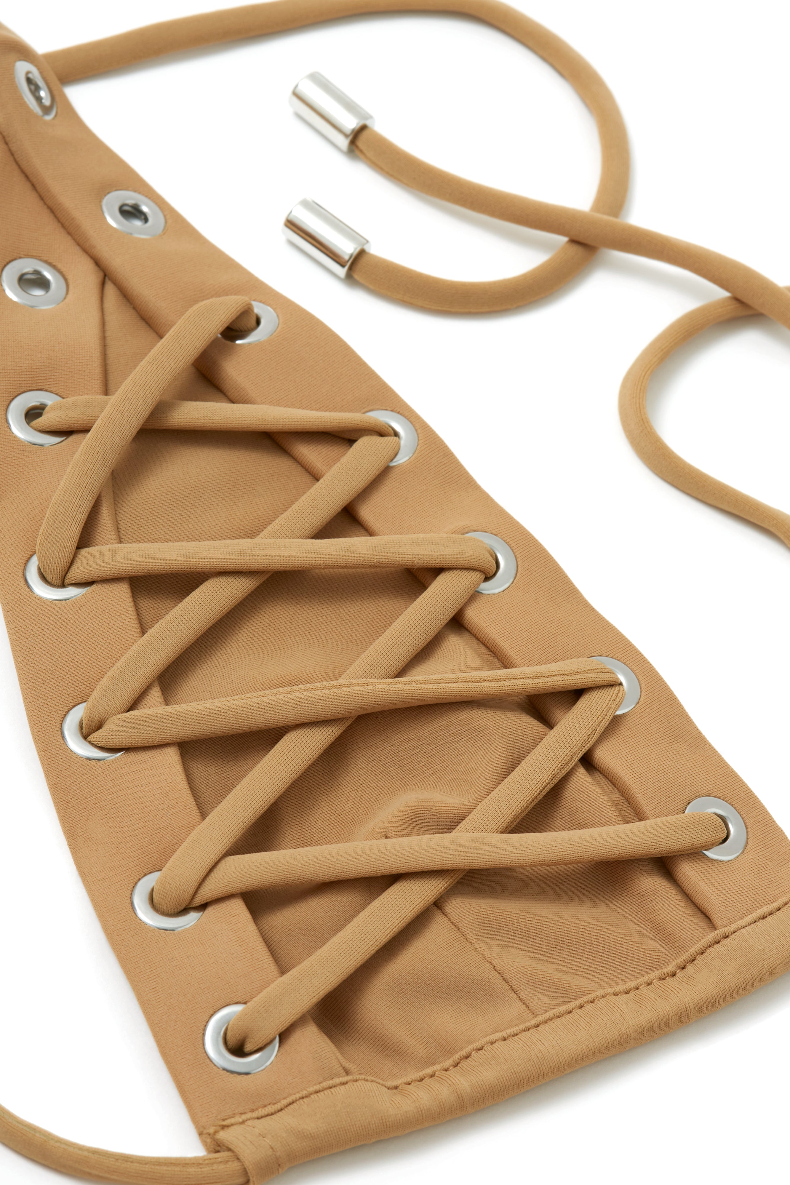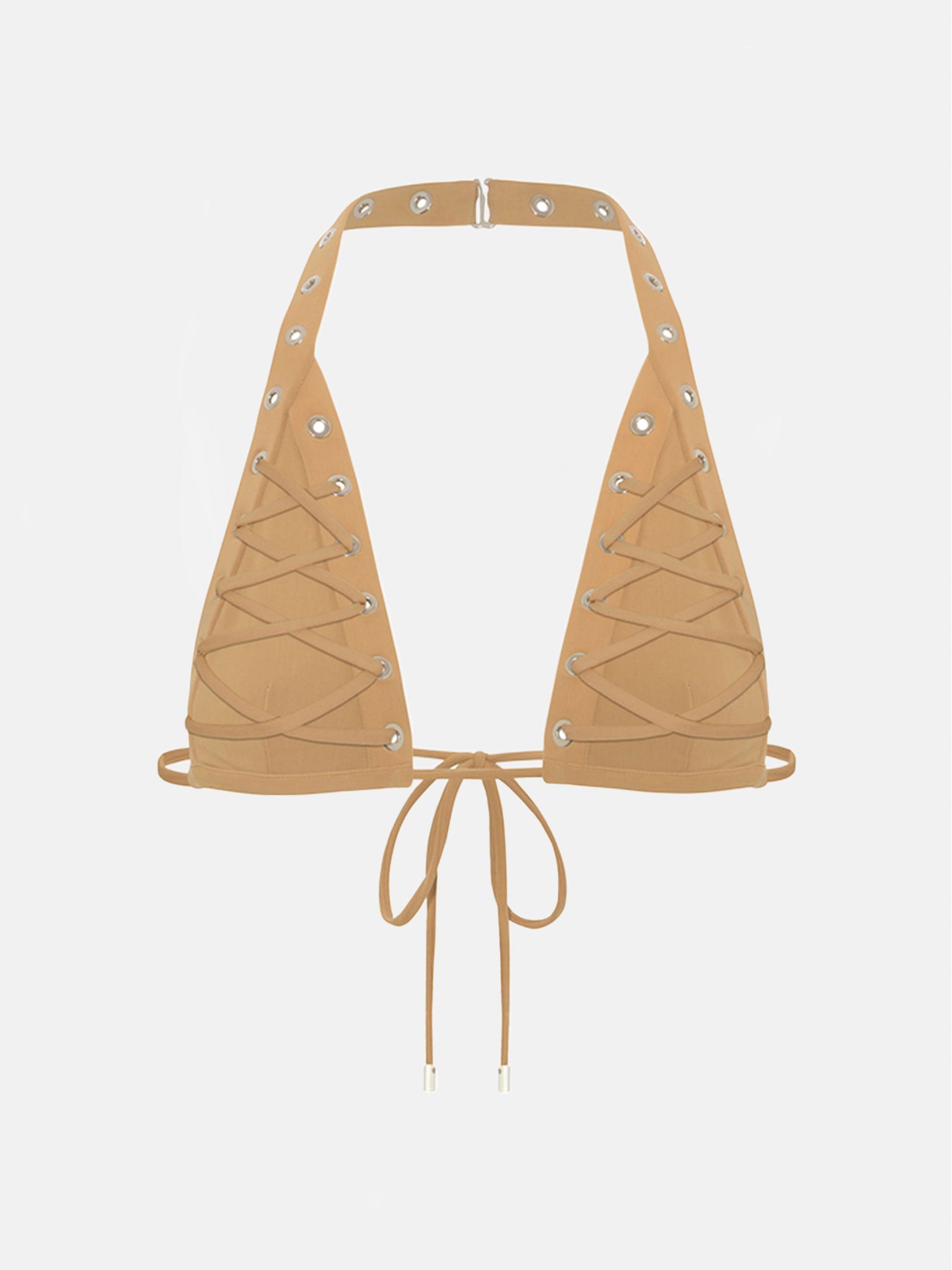 Dive into the exclusive POSTER GIRL Resort collection with the brand new Olivia Bikini. Crafted in London from luxurious slinky and finished with leather cord lacing details, this bikini can be layered with our infamous shapewear or chainmail, perfect for the poolside or dance floor.