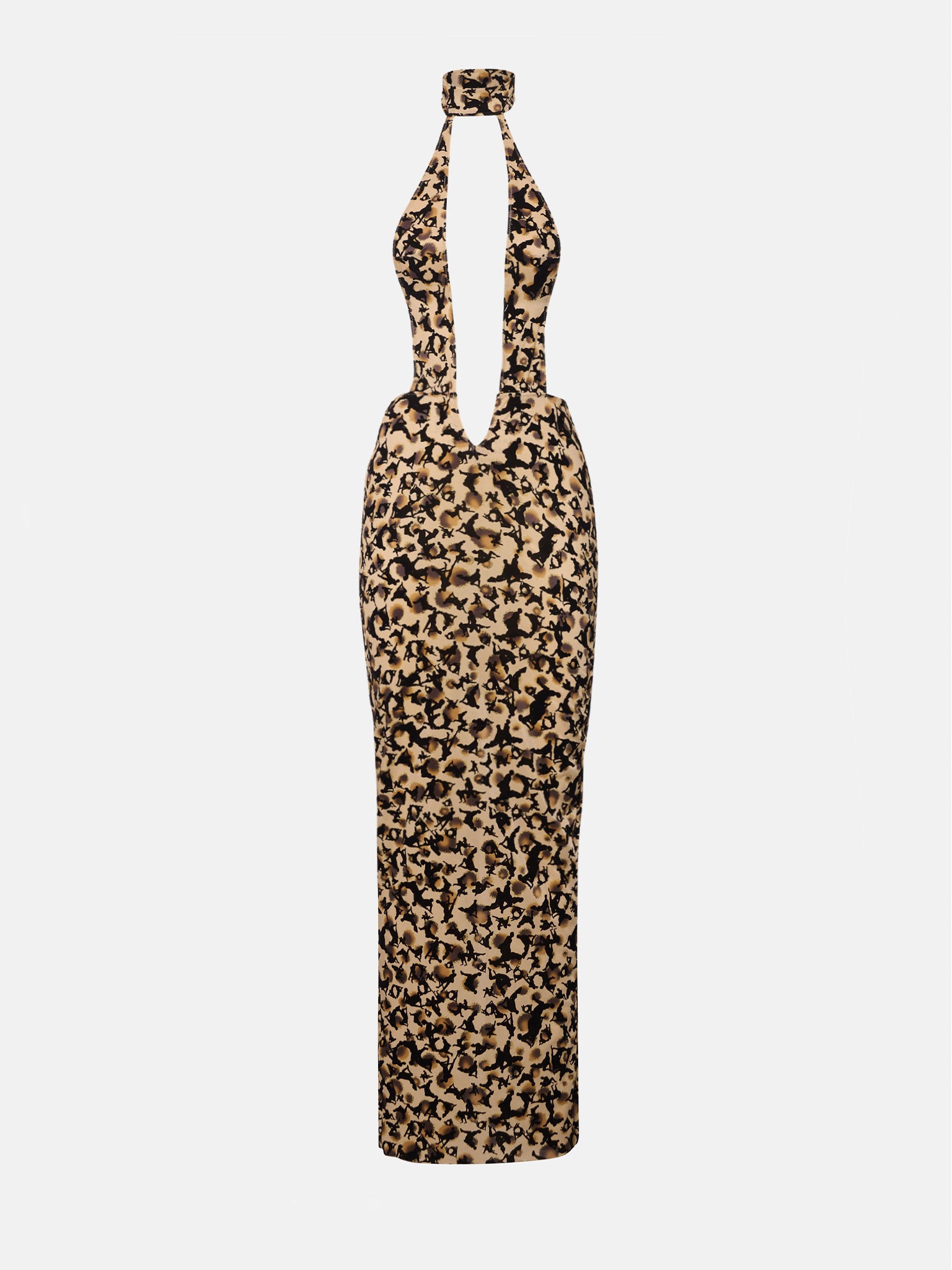 Looking for a sexy and sophisticated party piece? Meet the Bare Dress. This halterneck maxi dress has been cut from a flocked leopard print complete with Kama Sutra positions, and features a low plunging neckline & open back with tie fastening that can be adjusted for the perfect fit. Designed with a back vent slit in the skirt of the dress for a sexy and sleek finish.
