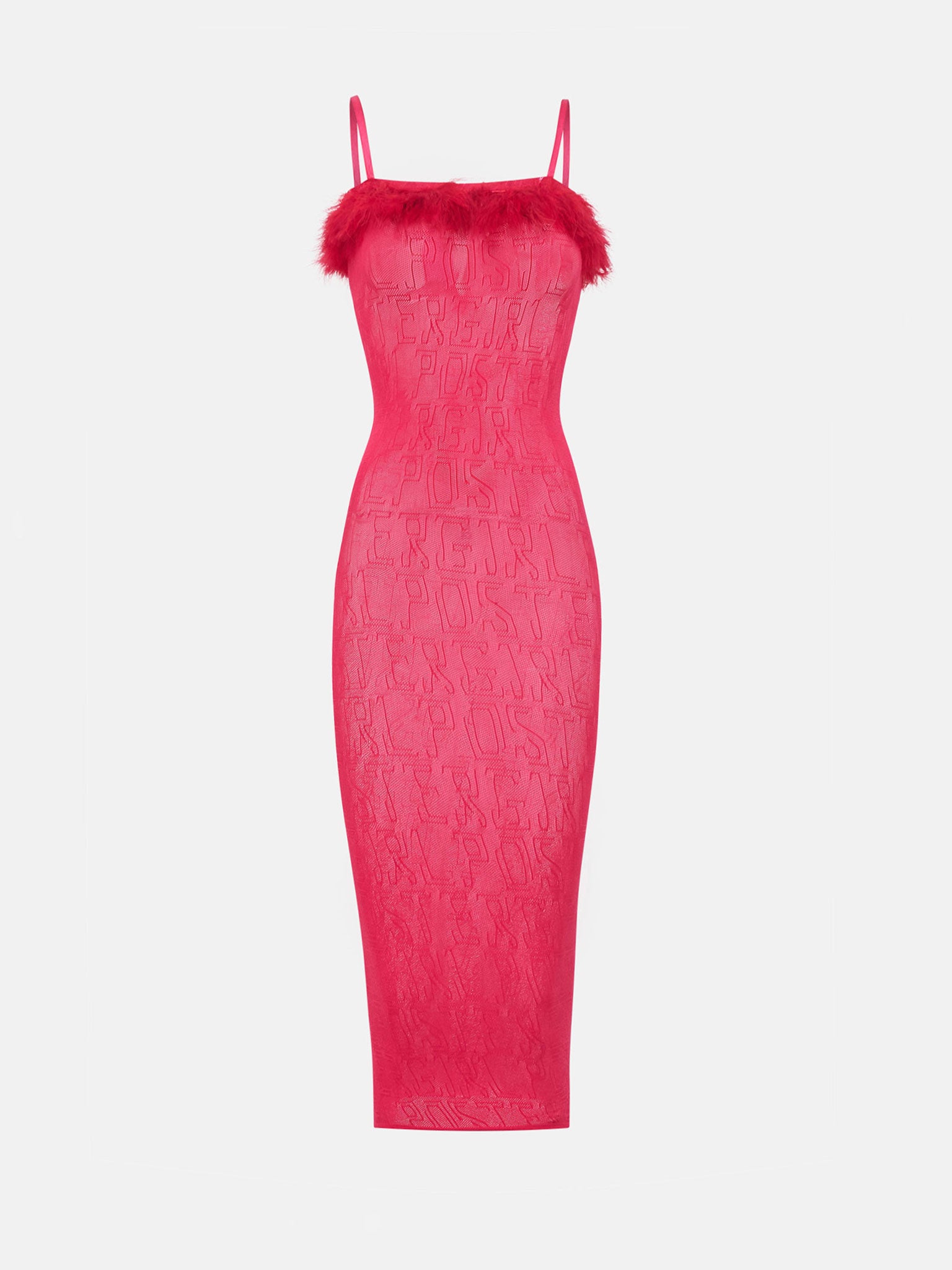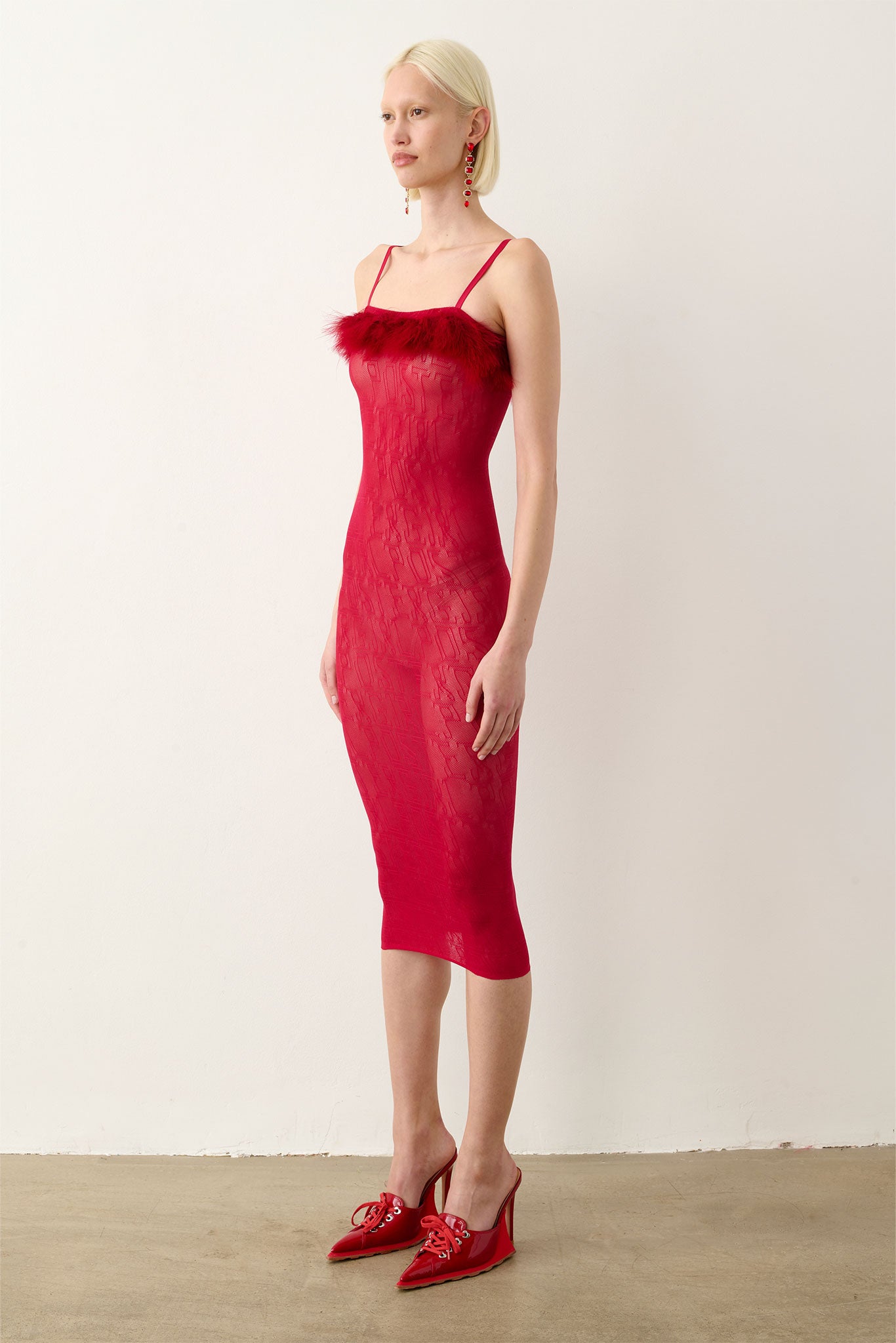 Naughty and nice. Christmas has come early this year with our Vanderbeck Dress. Detailed in our PG logo mesh with opaque coverage. Marabou feather trim lines the bust to draw the attention to where you want it. Adjustable heart sliders are included on the straps to adjust her to your liking.