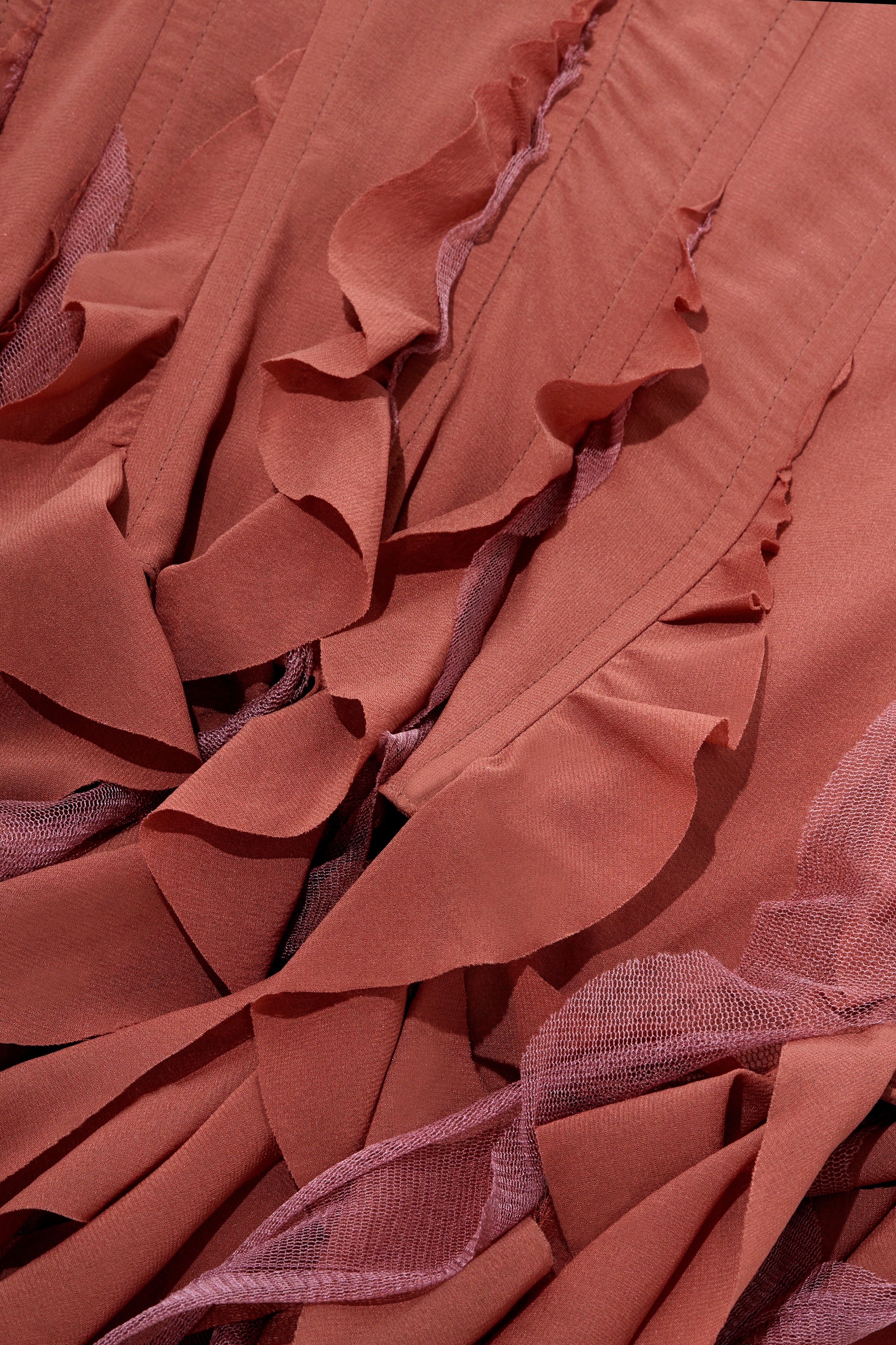 Cascading draped ruffles