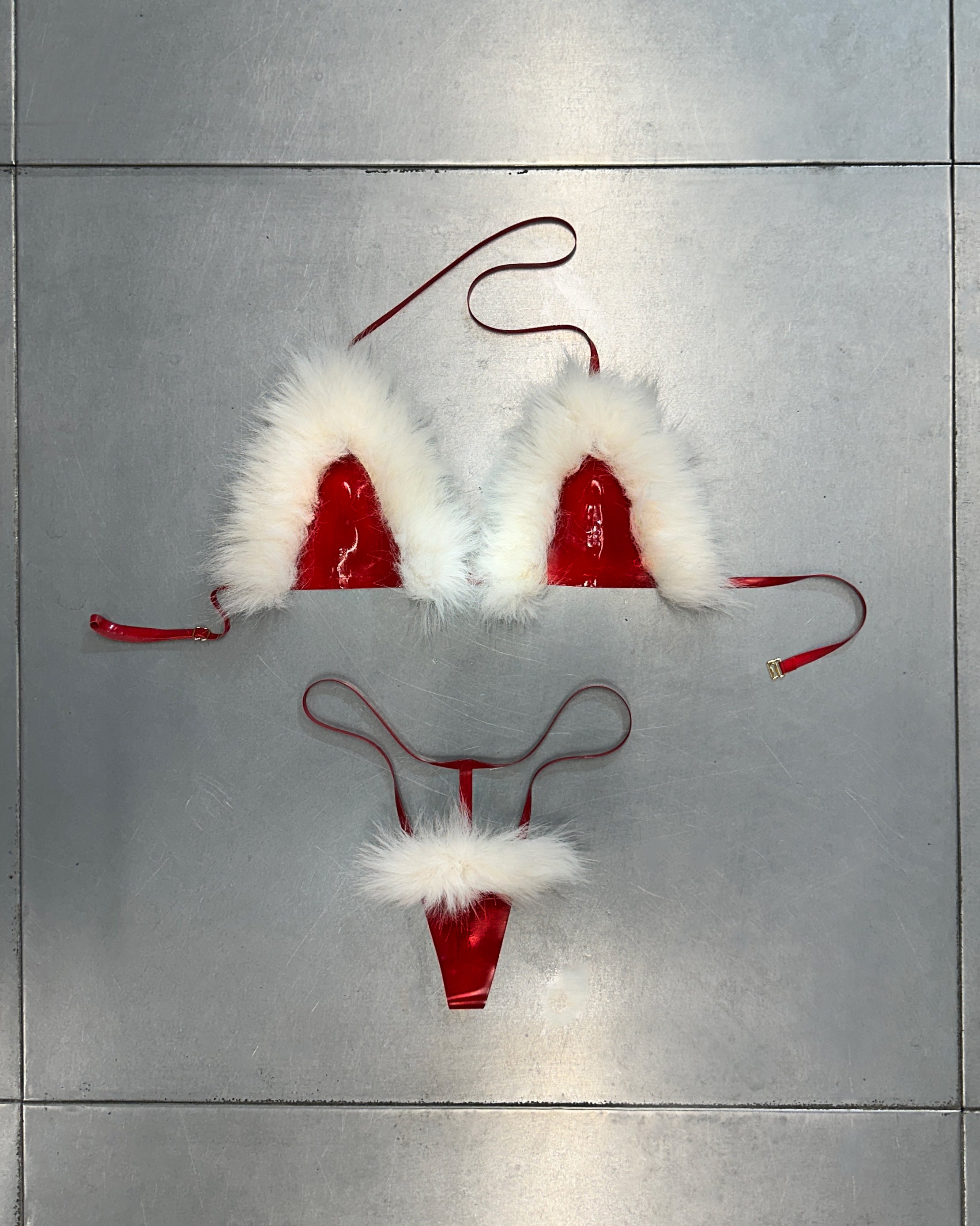 Our All I Want Bikini Top has been expertly handcrafted at our atelier in London. This faux fur latex piece has been designed with adjustable back strap, faux fur edge & delicate detailing. Style with our All I Want G-string for the full look.