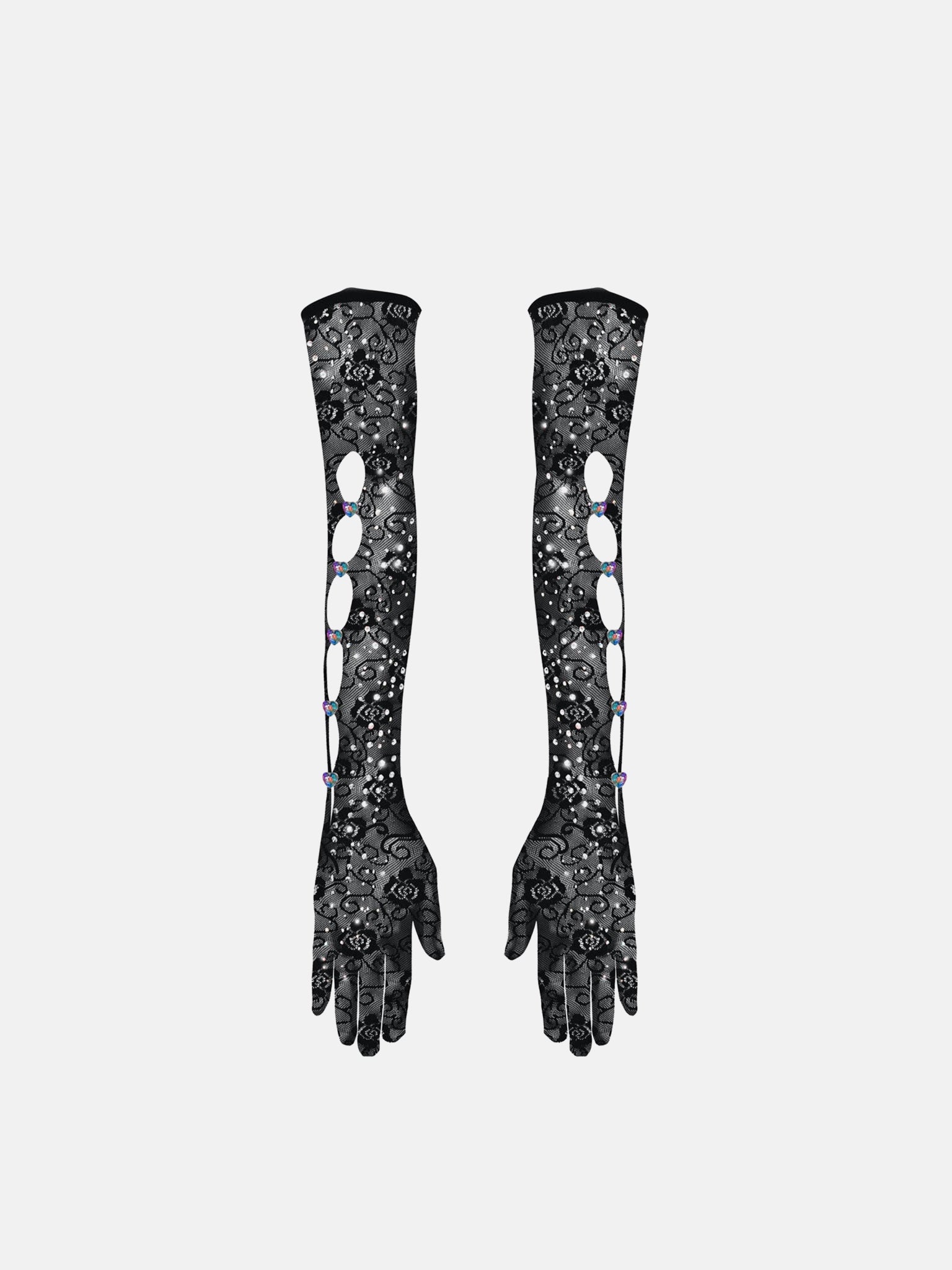 The Gracie Gloves are perfect for the party season! POSTER GIRL's innovative fishnet shapewear features rose swirl lace encrusted with diamant«∏'s.