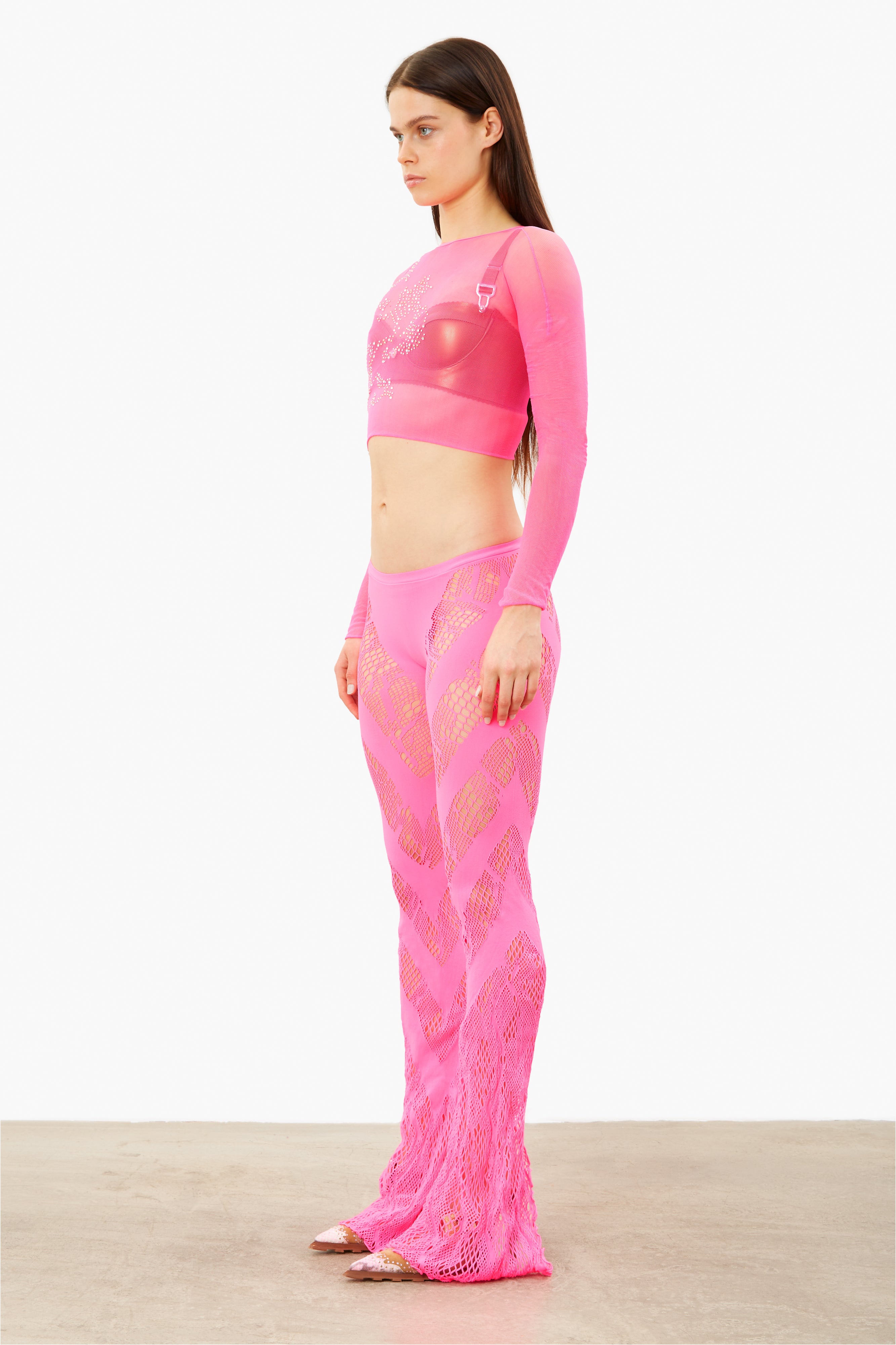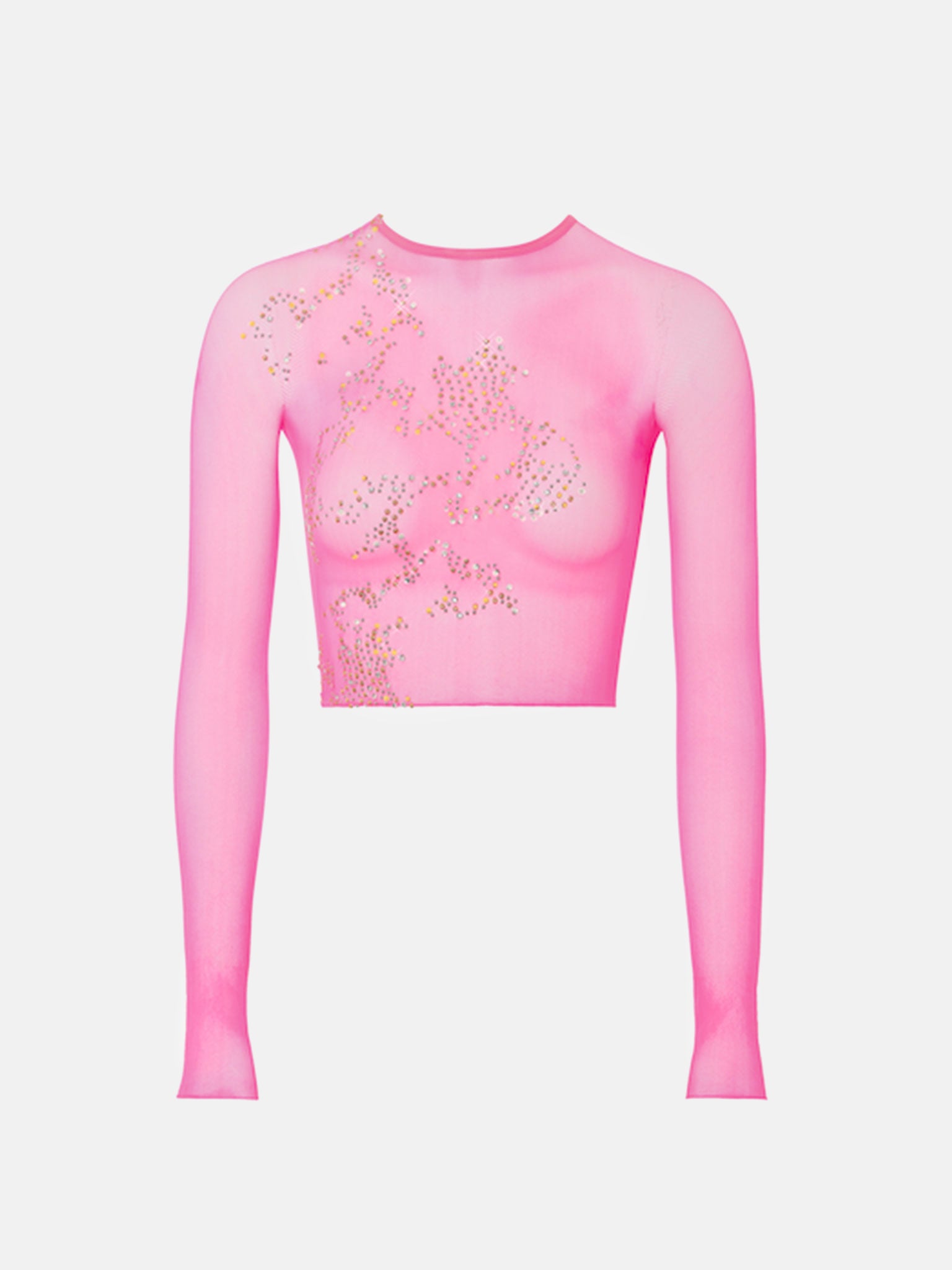 The SS23 Kitty Top is the perfect layering piece. Featuring a translucent mesh fabric, with snake skin hot fix embellishment detailing. It can be worn over your favourite undergarment or under a statement piece. The versatility of this top makes it a key wardrobe essential.