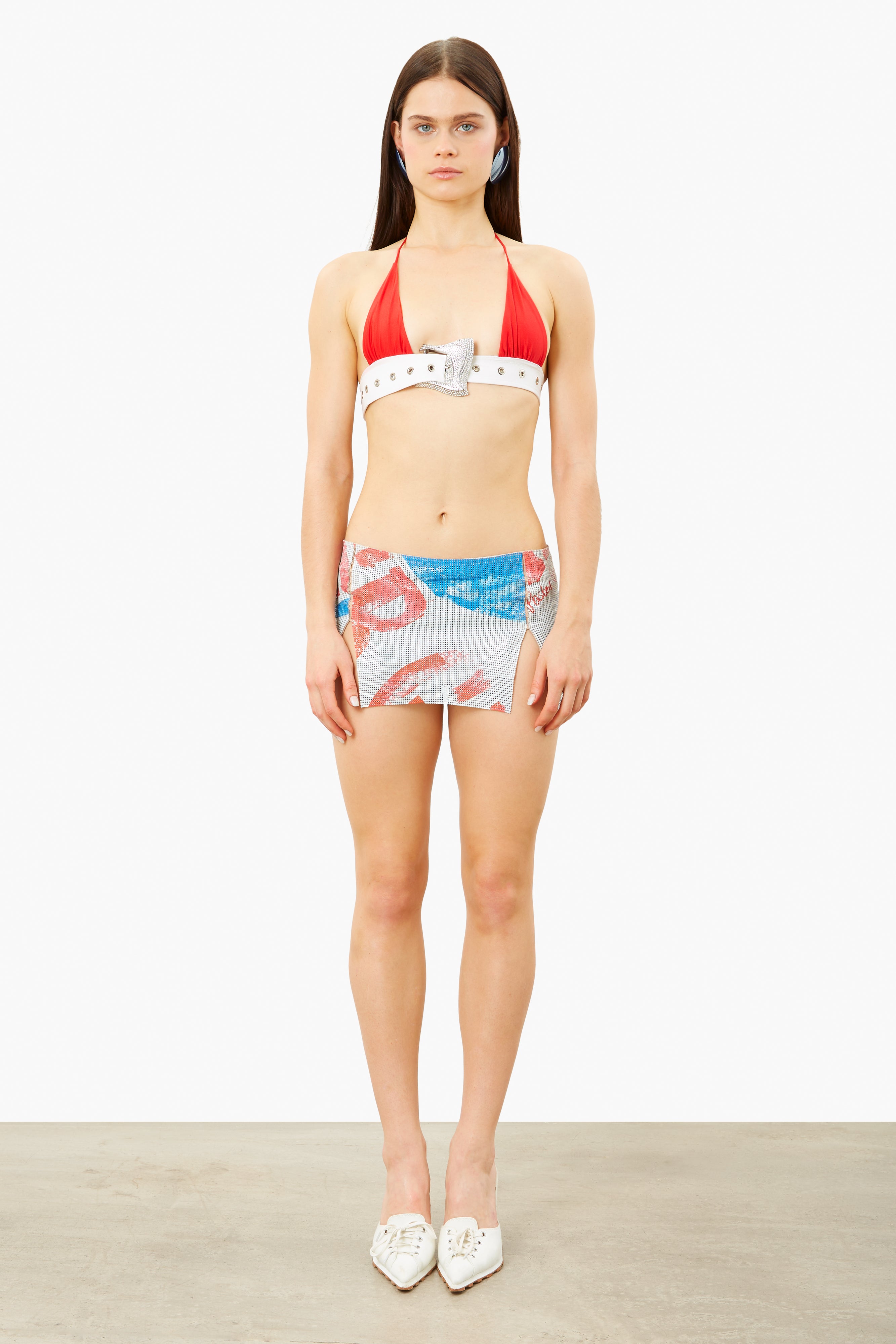 The Mia skirt is brand new from our Resort 23 collection, In an exclusive POSTER GIRL billboard print. Designed to sit on your hips.