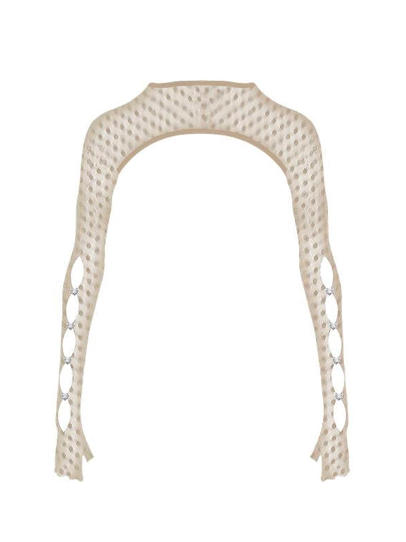 The Sabinna Sleeves are perfect for layering over your other POSTER GIRL pieces. Innovative fishnet shapewear features 'logo polka dot lace' and suctions you in all the right places. Cutout crystal heart embellished details in the open-work cut out sleeves. The brand logo is stamped into the back neck and softly spun yarns makes for maximum comfort.