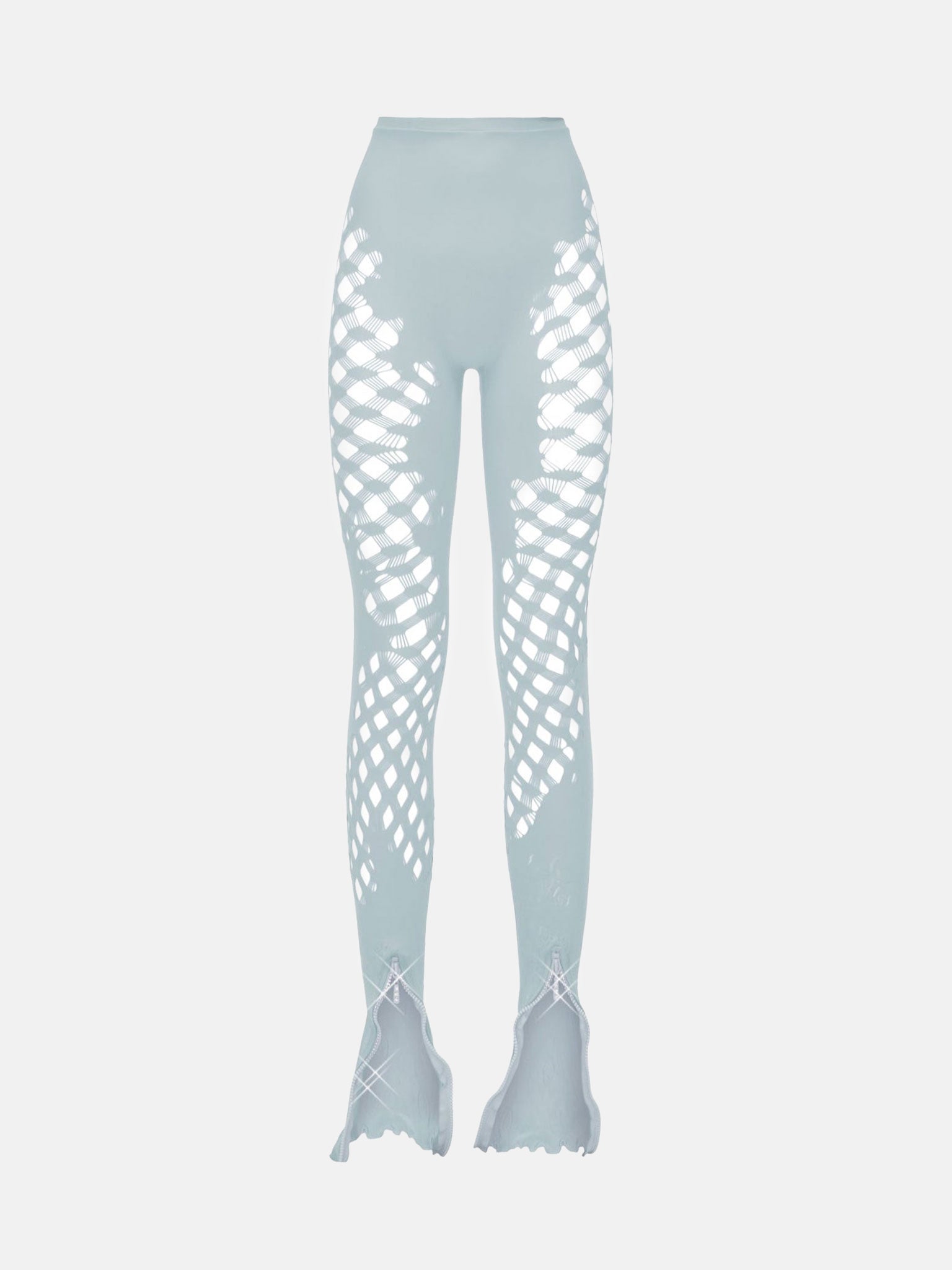 POSTER GIRL's Sierra Leggings in Smoke have dramatic flared hems emphasised by functional rhinestone zippers. Asymmetric opacity and wide fishnet cutouts add a daring touch to this show-stopping staple. POSTER GIRL's shapewear category is designed to suction you in all the right places, releasing and supporting your natural curves where needed.